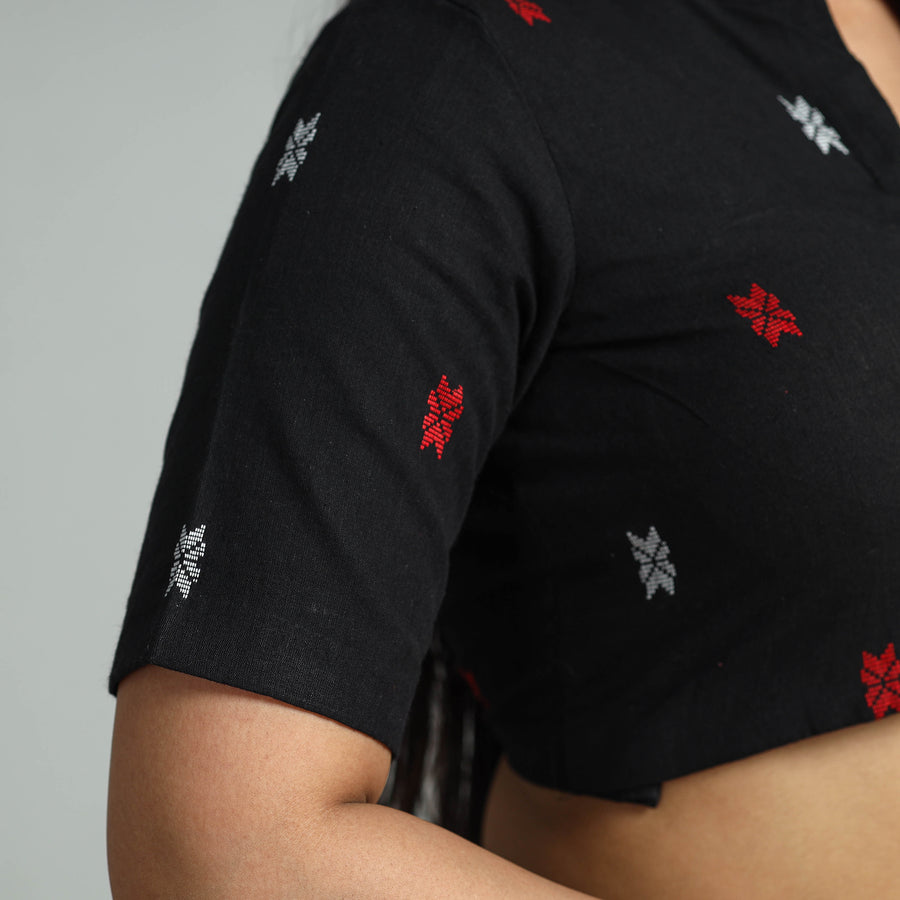 This jacquard-weave cotton blouse is seamlessly stitched with padded comfort for a relaxed fit. Crafted from cotton fabric known for its breathability and comfort. It features half sleeves that provide balanced coverage, and the hook lock adds convenience and allows for easy wear and removal, making it perfect for any occasion.