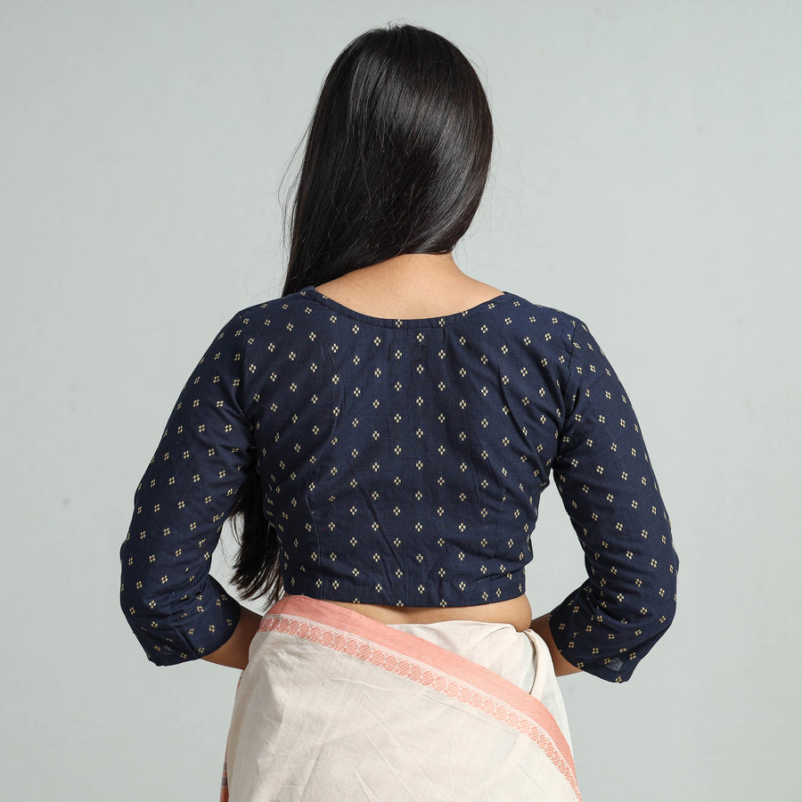 This jacquard-weave cotton blouse is seamlessly stitched with padded comfort for a relaxed fit. Crafted from cotton fabric known for its breathability and comfort. It features a side zipper lock and 3/4 sleeves that provide balanced coverage, making it perfect for any occasion.