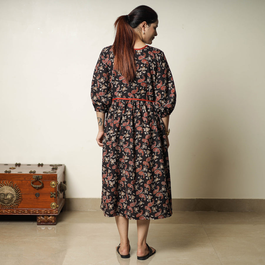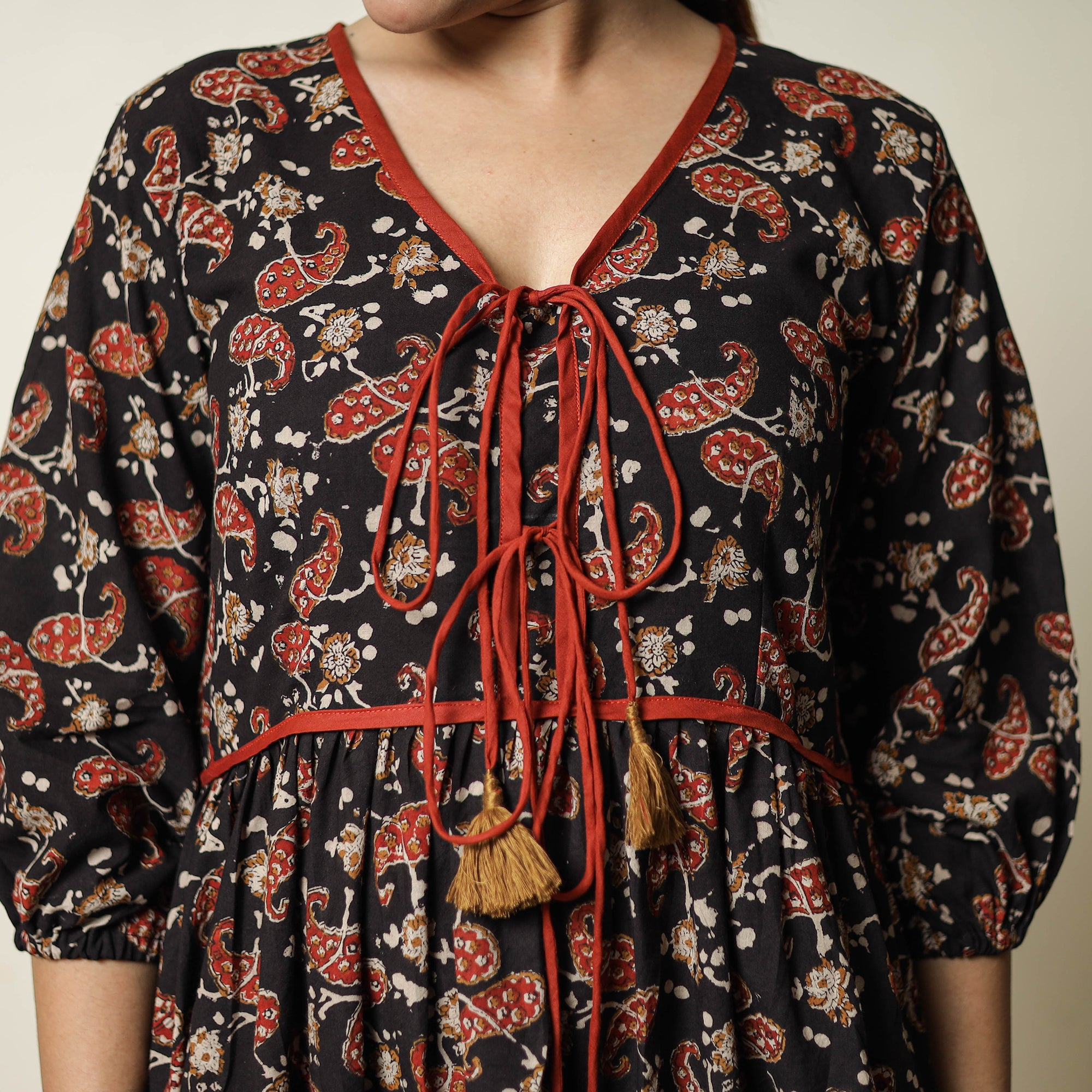 Indulge in the traditional charm of this bagru block-printed cotton flared dress, thoughtfully designed to enhance your style. This dress is crafted from natural dyed cotton fabric, ensuring a comfortable feel against your skin.