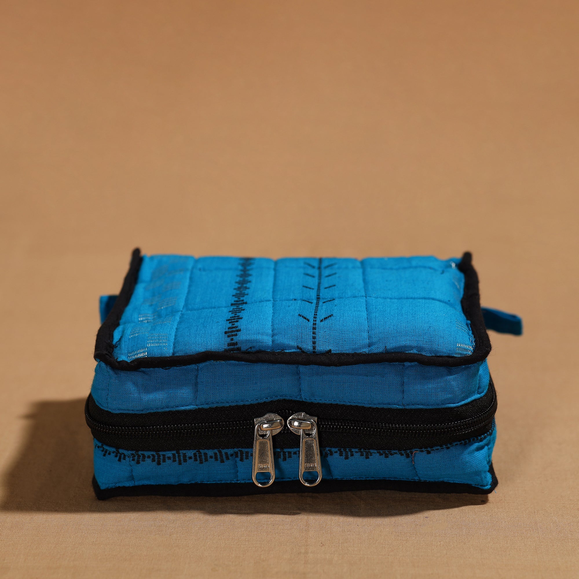 | Material | Blue handmade 4-pocket cotton jewelry bag. It has four spacious pockets that provide ample room for storing and organizing your favorite jewelry pieces. |
