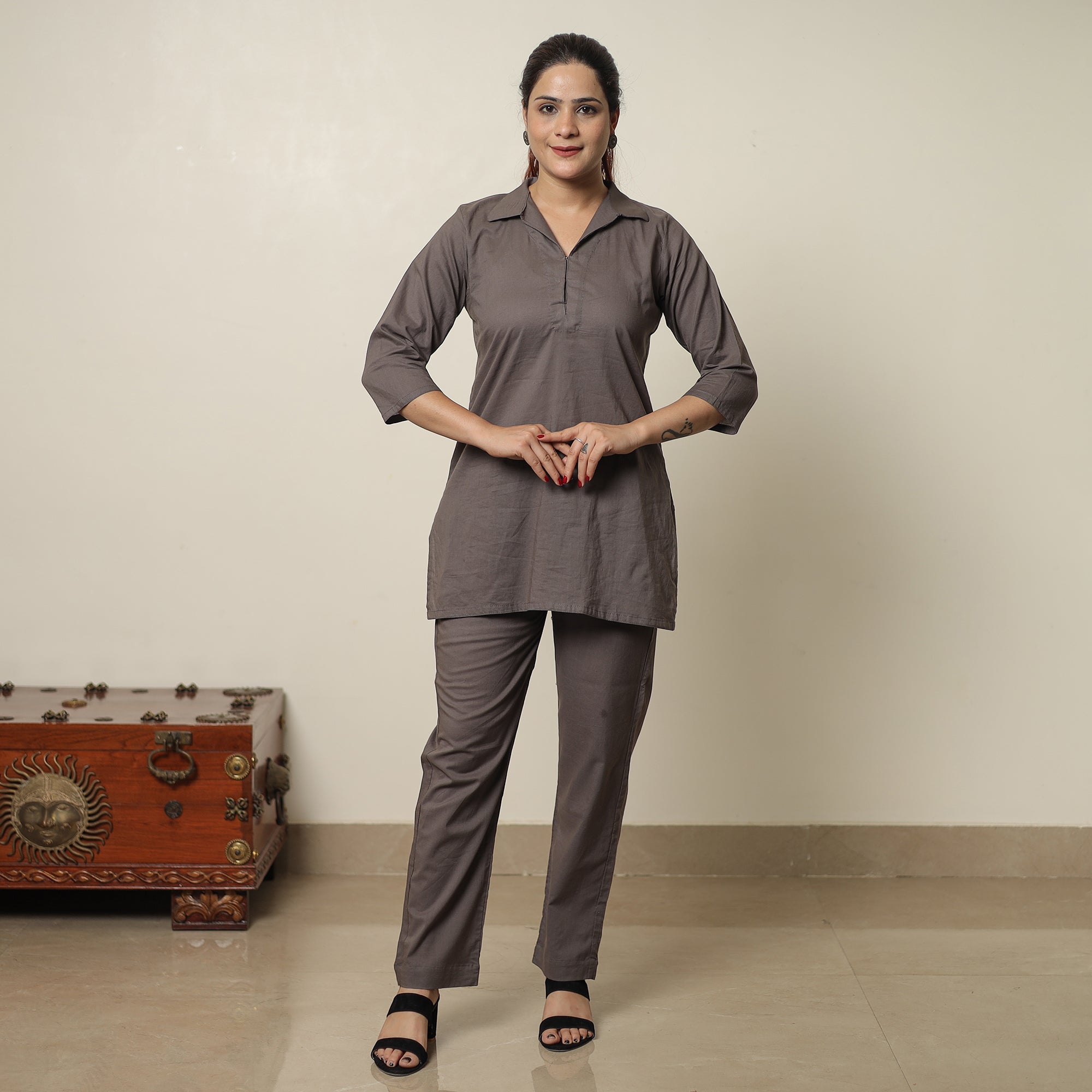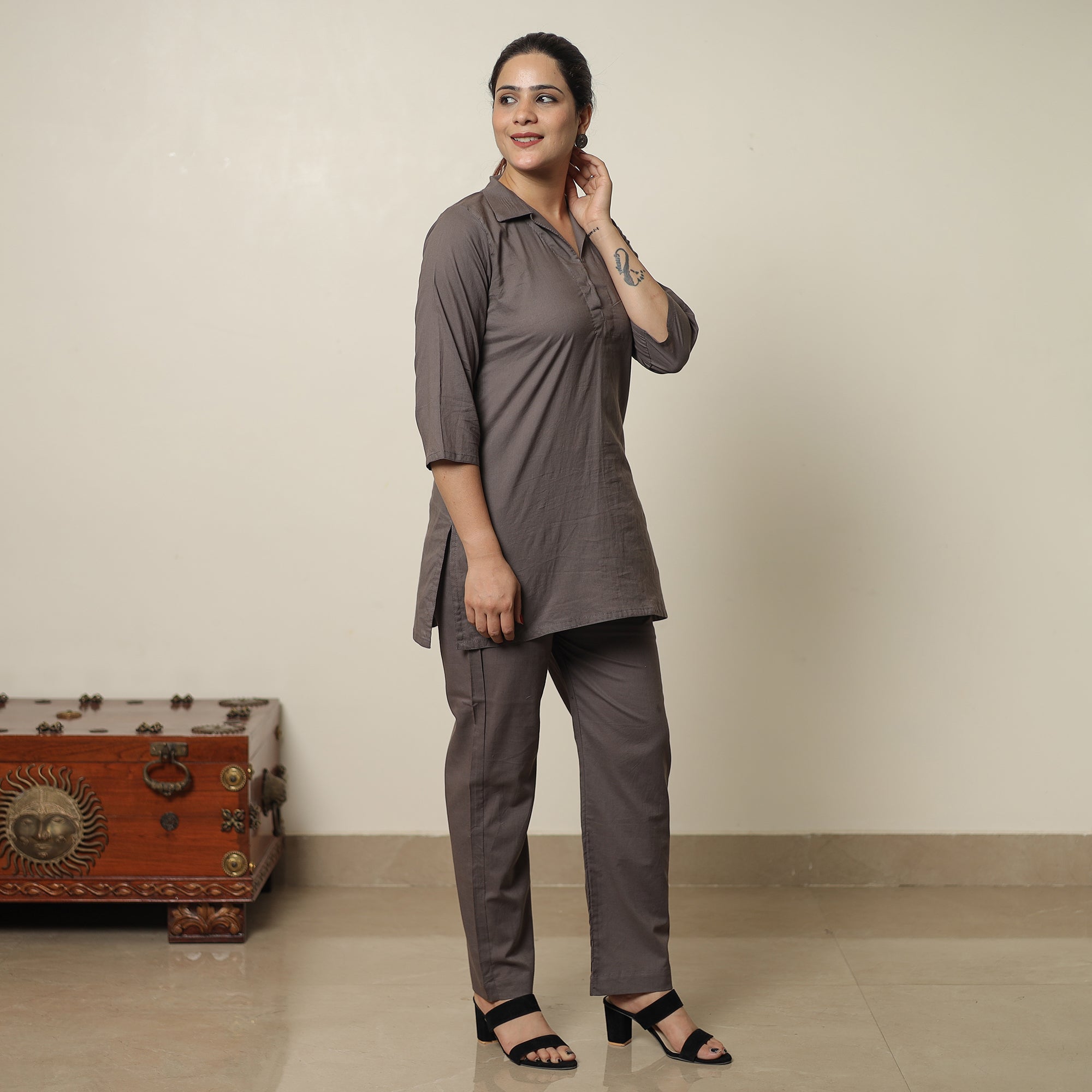 Stay comfortable and stylish in this cotton top and pant co-ord set. Made from prewashed, plain-dyed cotton fabric. The elasticized waist pant ensures a great fit, while the two side pockets adds functionality to this pant. The unique design ensures a beautiful and comfortable fit.