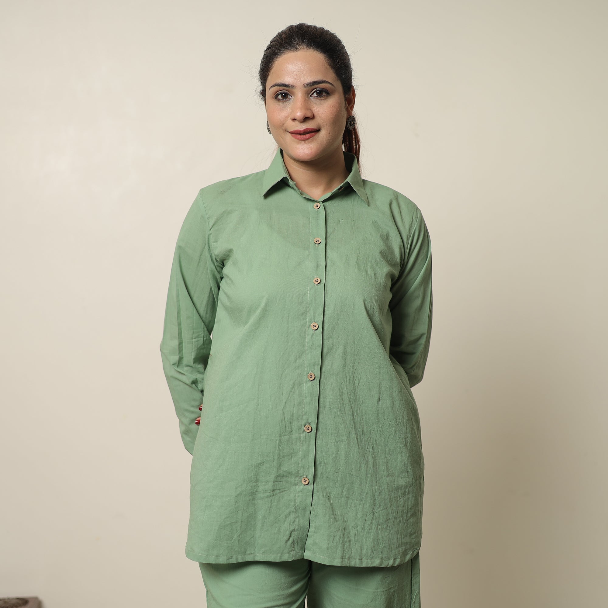 Stay comfortable and stylish in this cotton top and palazzo co-ord set. Made from prewashed, plain-dyed cotton fabric. The elasticized waist pant ensures a great fit, while the two side pockets adds functionality to this pant. The unique design ensures a beautiful and comfortable fit.