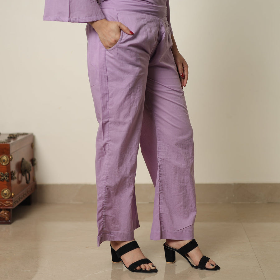 Stay comfortable and stylish in this cotton top and palazzo co-ord set. Made from prewashed, plain-dyed cotton fabric. The elasticized waist pant ensures a great fit, while the two side pockets adds functionality to this pant. The unique design ensures a beautiful and comfortable fit.