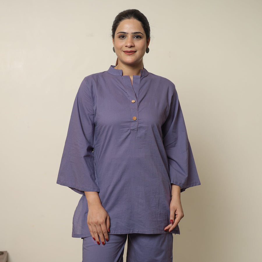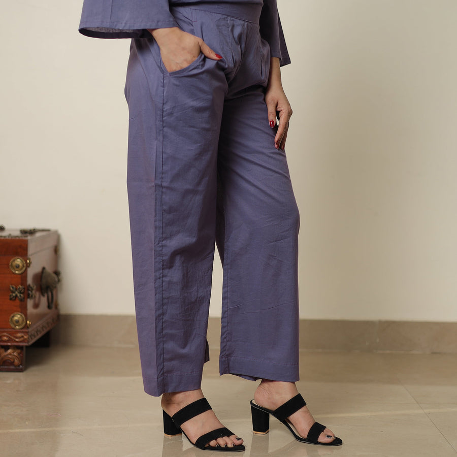Stay comfortable and stylish in this cotton top and palazzo co-ord set. Made from prewashed, plain-dyed cotton fabric. The elasticized waist pant ensures a great fit, while the two side pockets adds functionality to this pant. The unique design ensures a beautiful and comfortable fit.