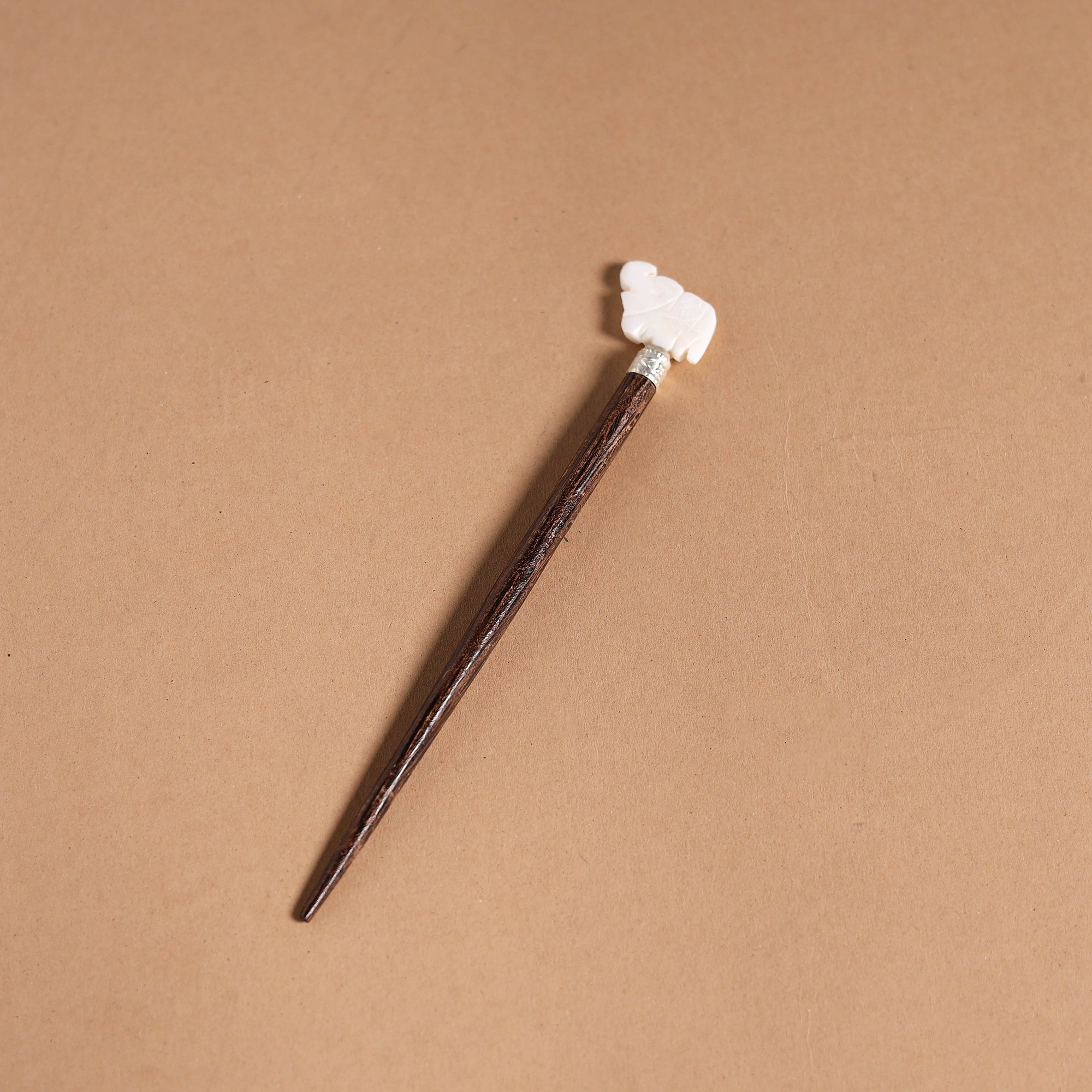 Handcrafted wooden juda sticks with natural seashells by Kinkar Ghosh. This unique wood & mother-of-pearl shell juda stick is unique and suitable to be worn on any special occasion.