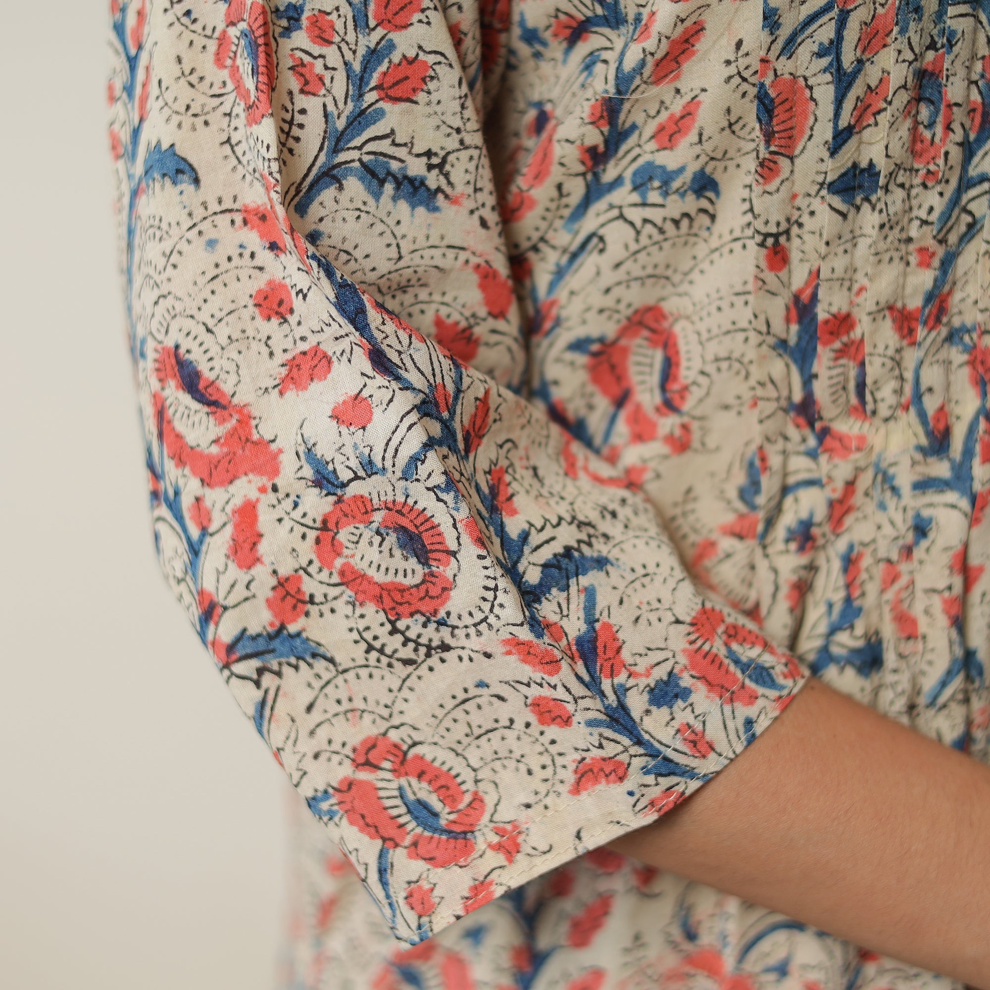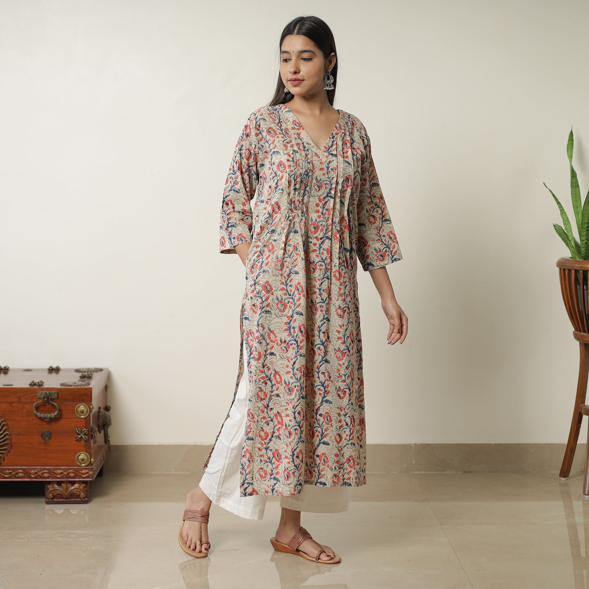 This uniquely designed pedana beige hand-block-printed cotton pintuck straight kalamkari kurta is a perfect blend of style and comfort. Crafted from natural-dyed cotton fabric, it ensures a comfortable feel against your skin. The kurta also features a convenient one-side pocket, perfect for carrying small essentials. It boasts an exquisite pintuck design, adding a touch of elegance to your ensemble. It's an ideal choice for both casual and festive occasions.