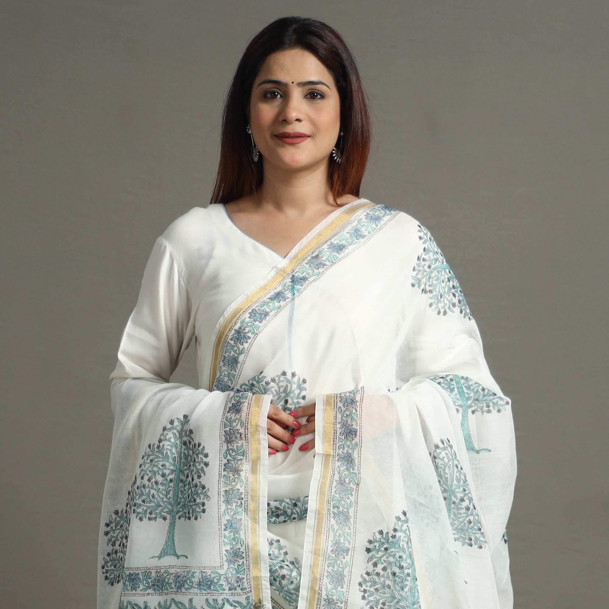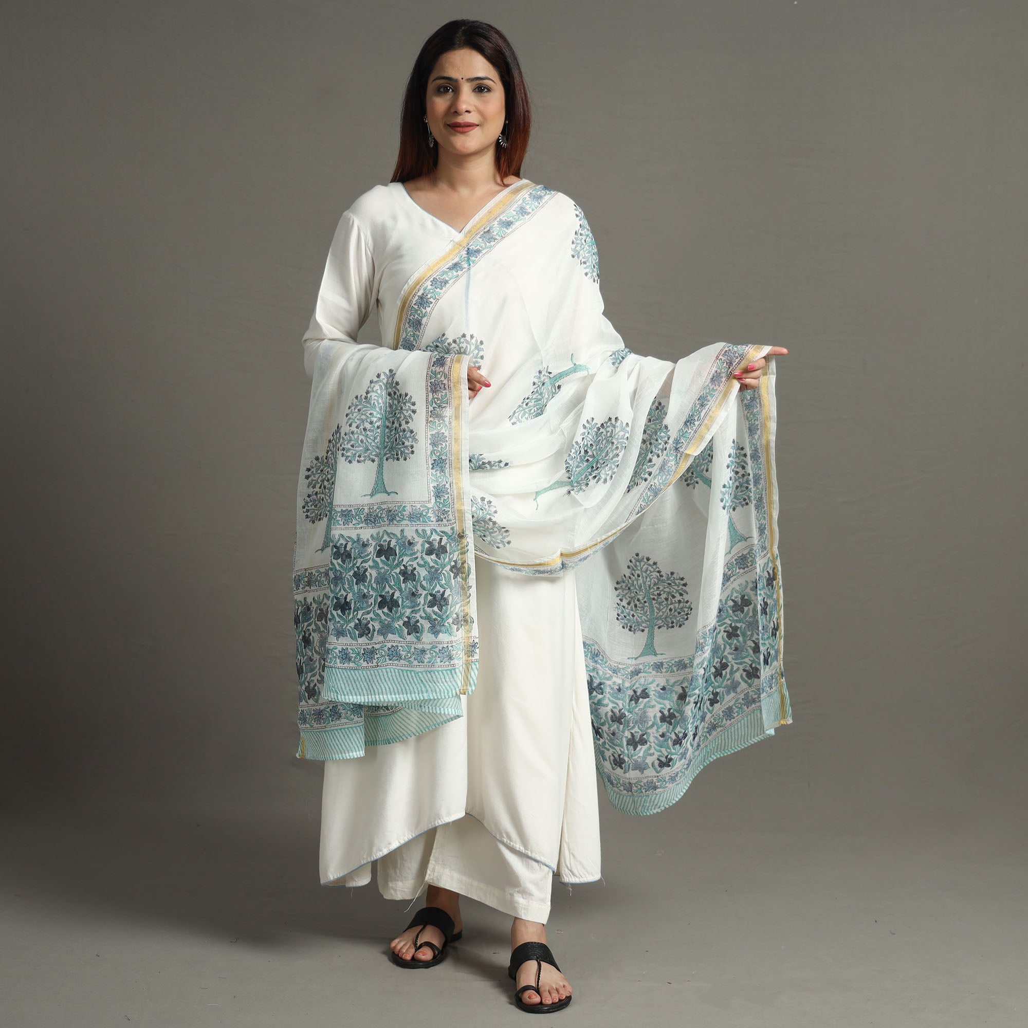 Elevate your style with our exquisite sanganeri hand-block-printed chanderi silk dupatta with a zari border. Crafted with precision and adorned with bleed-free VAT dyes, it exudes fine quality and vibrant hues. Sanganeri is a hand-block printing technique originating from Sanganer, a village in the southern part of Jaipur, Rajasthan.