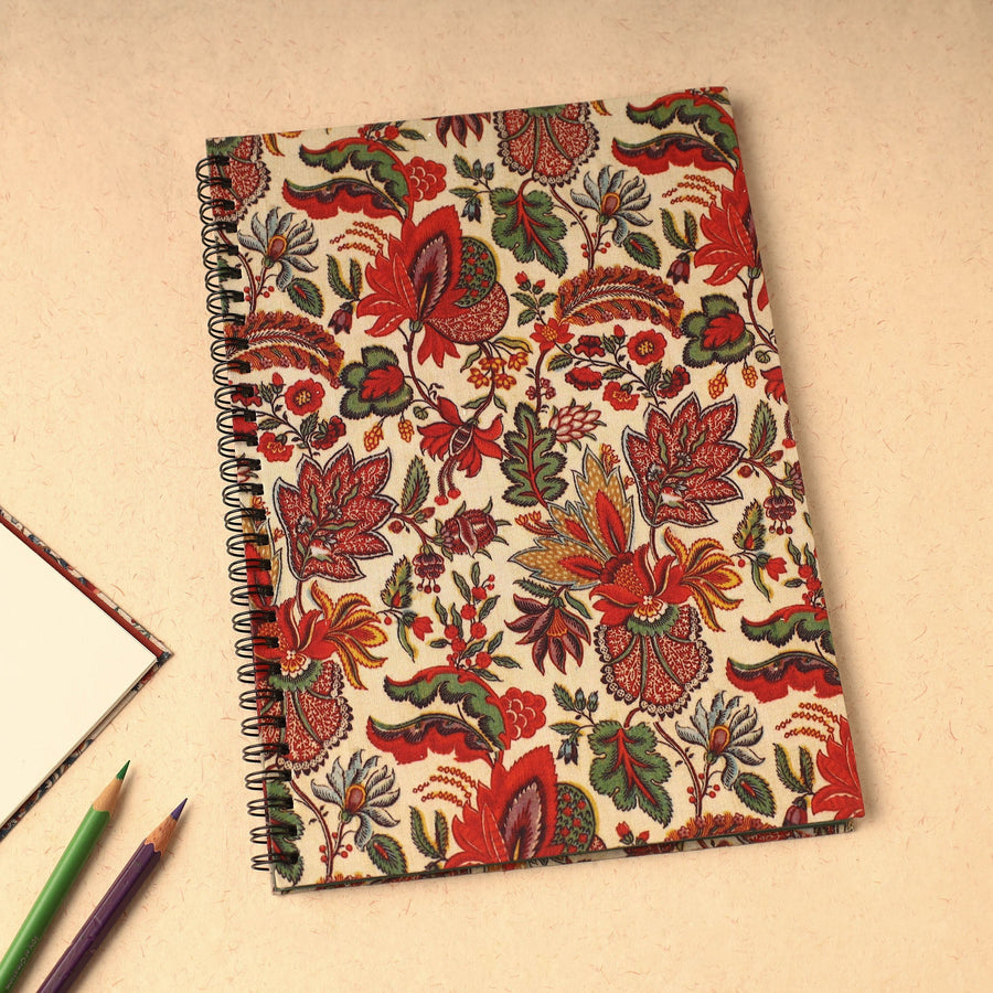 Material Floral printed handcrafted spiral notebook. This hardbound cover notebook is made from handmade paper and printed cotton fabric.
