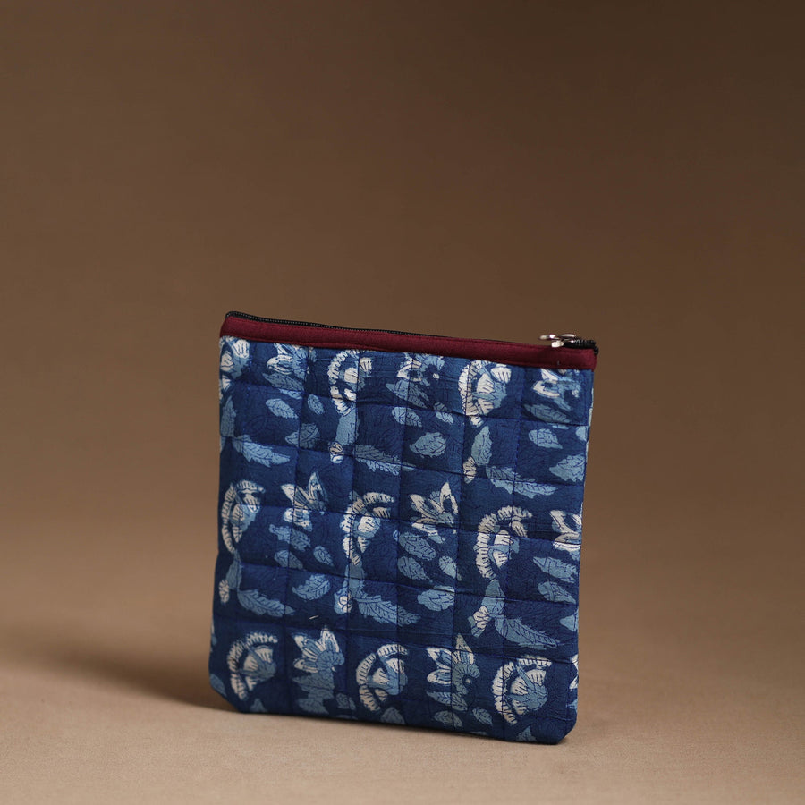 Blue - Handmade Quilted Cotton Utility Pouch 29