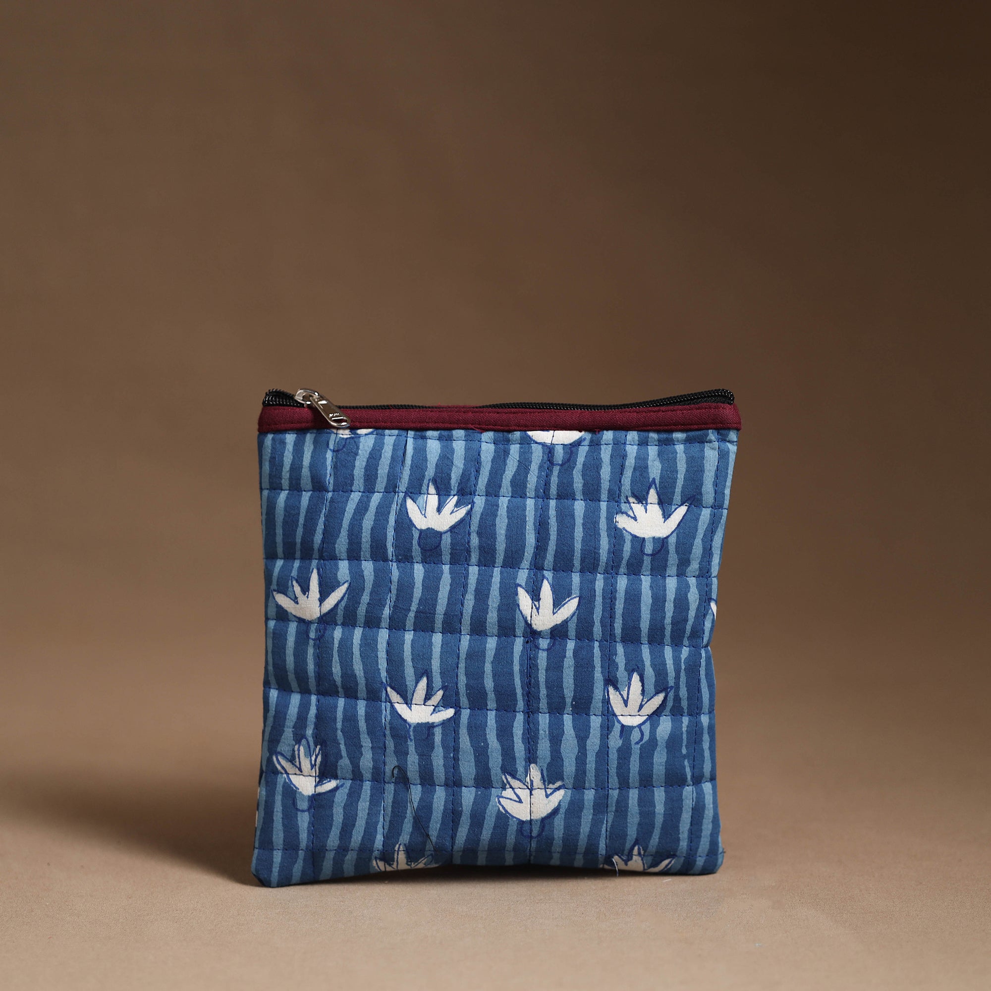 This handmade quilted cotton multipurpose utility pouch. This utility pouch with a zip-lock main closure, providing ample space for your essentials. The foam layer lining ensures durability and protection.