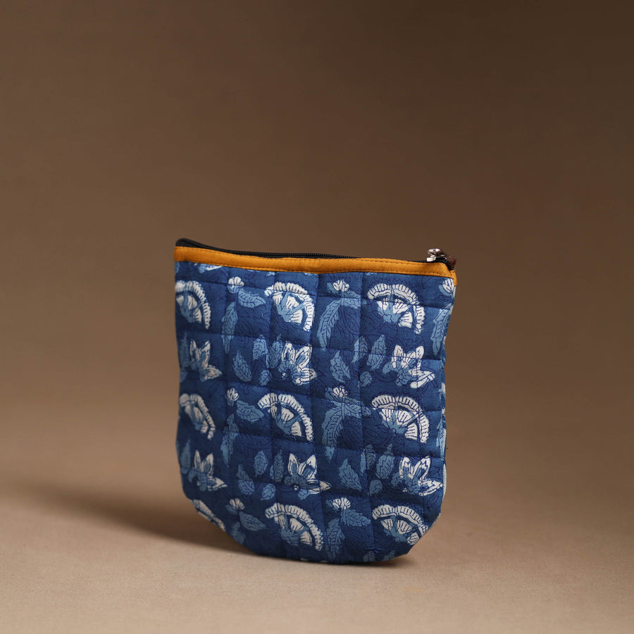 Material This handmade quilted cotton multipurpose utility pouch. This utility pouch with a zip-lock main closure, providing ample space for your essentials. The foam layer lining ensures durability and protection.