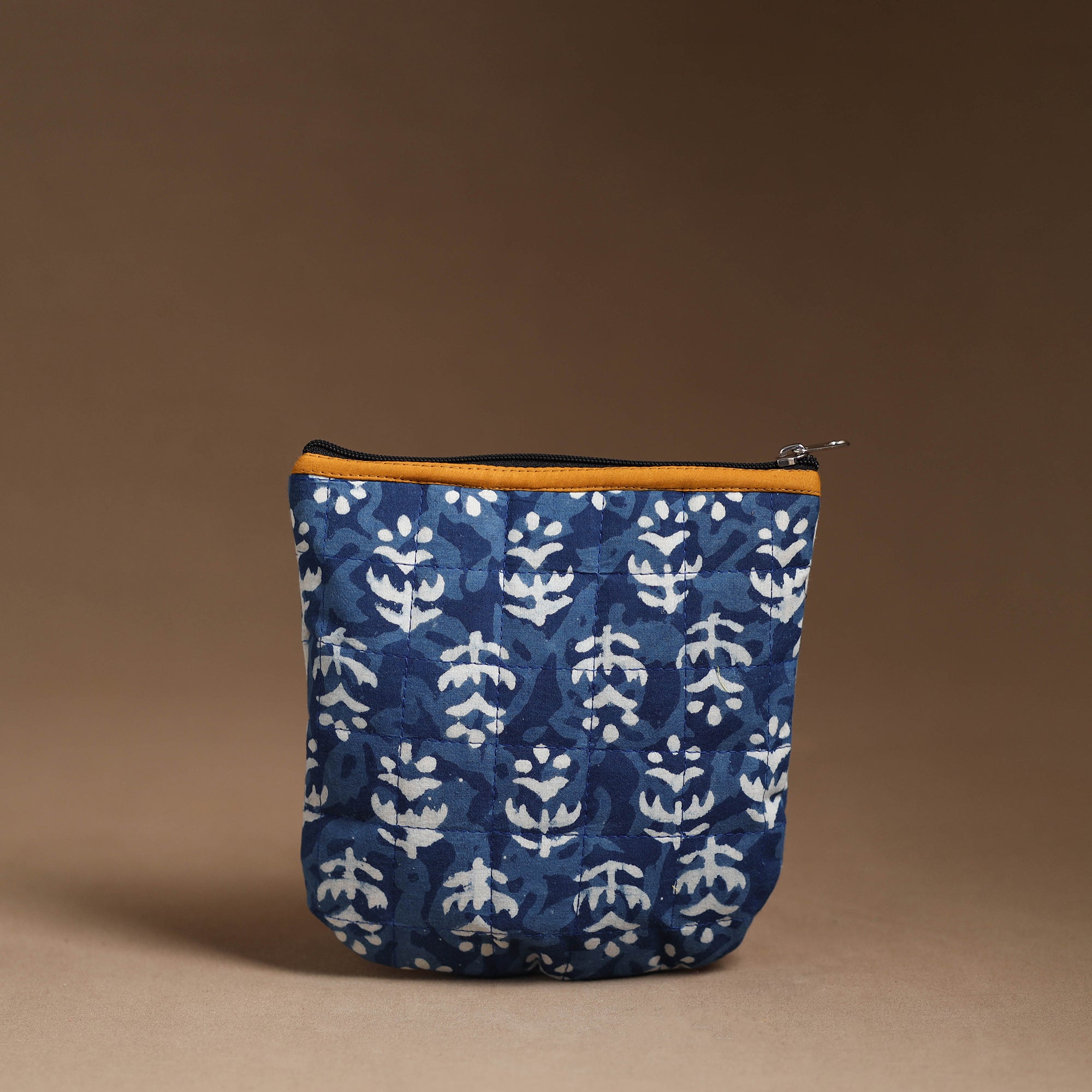 Material This handmade quilted cotton multipurpose utility pouch. This utility pouch with a zip-lock main closure, providing ample space for your essentials. The foam layer lining ensures durability and protection.