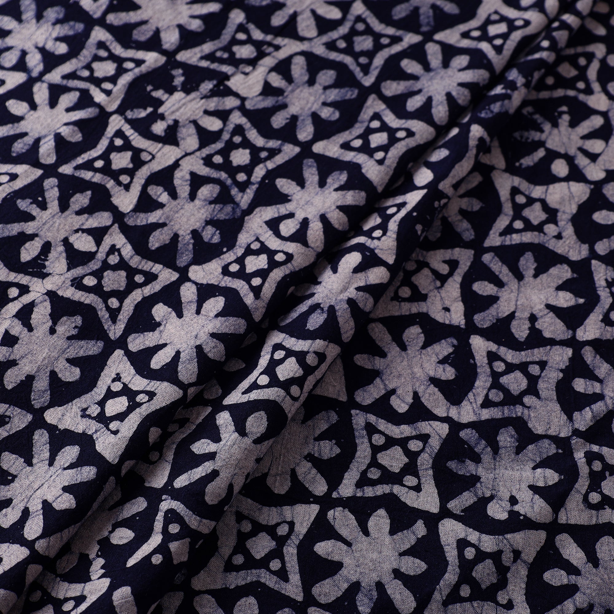 Indulge in the traditional craftsmanship with our kutch cotton batik print fabric. Batik is a type of resist printing process in which wax is applied to the fabric in specific areas, a craft that has been perfected over generations in India. It offers durable, comfortable, and visually striking textile, perfect for creating unique garments or home decor.
