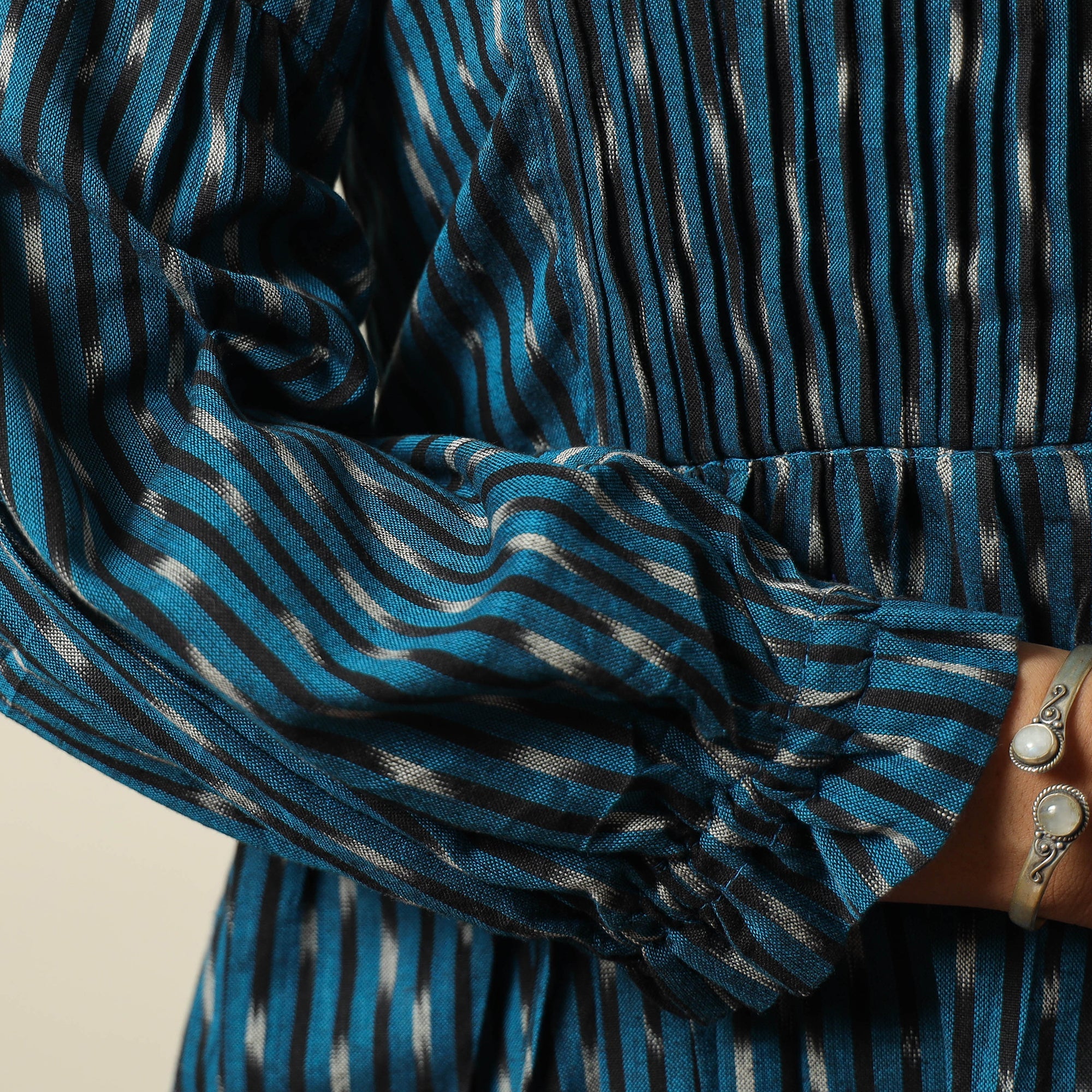 This uniquely designed pochampally ikat weave cotton pintuck flared dress is a perfect blend of style and comfort. Crafted from fine-quality cotton fabric, it ensures a comfortable feel against your skin. This dress is perfect for your daily outing and for a special occasion.