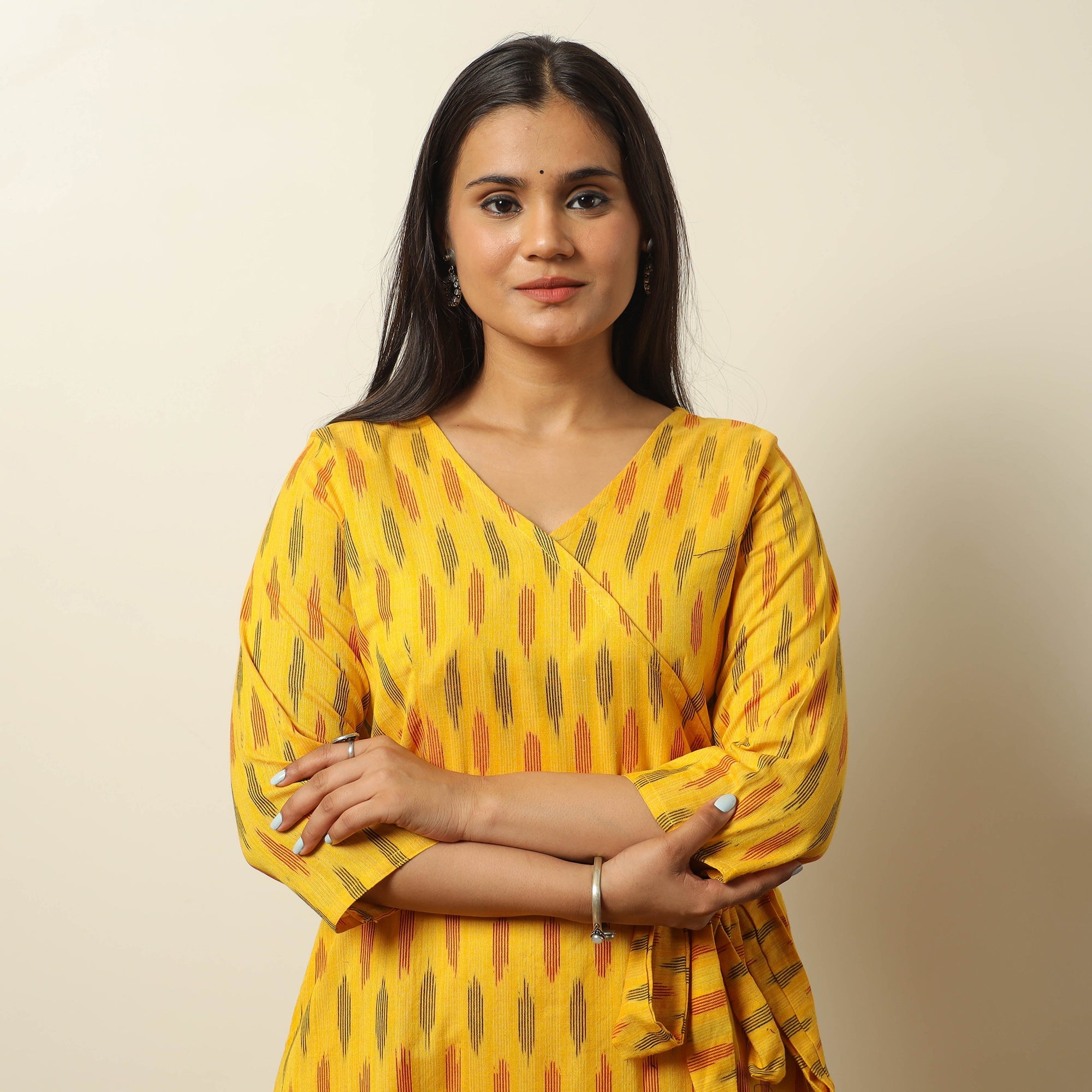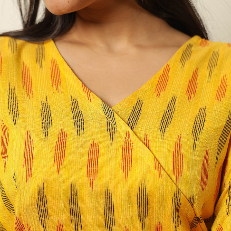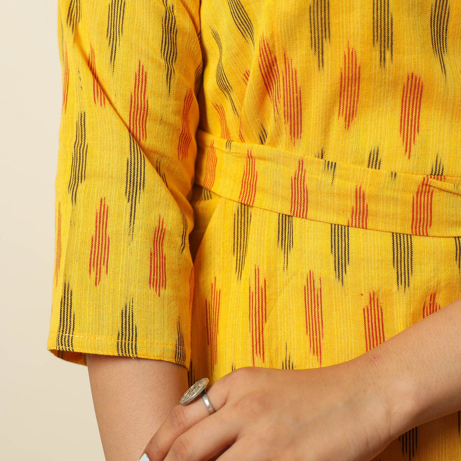 This uniquely designed pochampally ikat weave cotton dress with belt is a perfect blend of style and comfort. Crafted from fine-quality cotton fabric, it ensures a comfortable feel against your skin. This dress is perfect for your daily outing and for a special occasion.