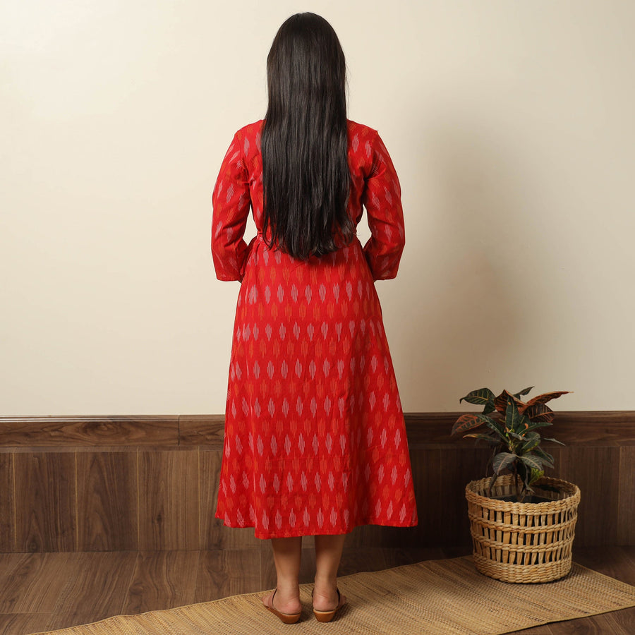This uniquely designed pochampally ikat weave cotton dress with belt is a perfect blend of style and comfort. Crafted from fine-quality cotton fabric, it ensures a comfortable feel against your skin. This dress is perfect for your daily outing and for a special occasion.