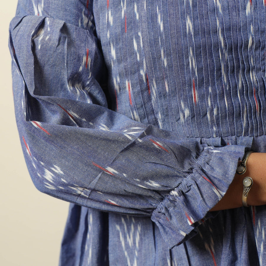 This uniquely designed pochampally ikat weave cotton pintuck flared dress is a perfect blend of style and comfort. Crafted from fine-quality cotton fabric, it ensures a comfortable feel against your skin. This dress is perfect for your daily outing and for a special occasion.