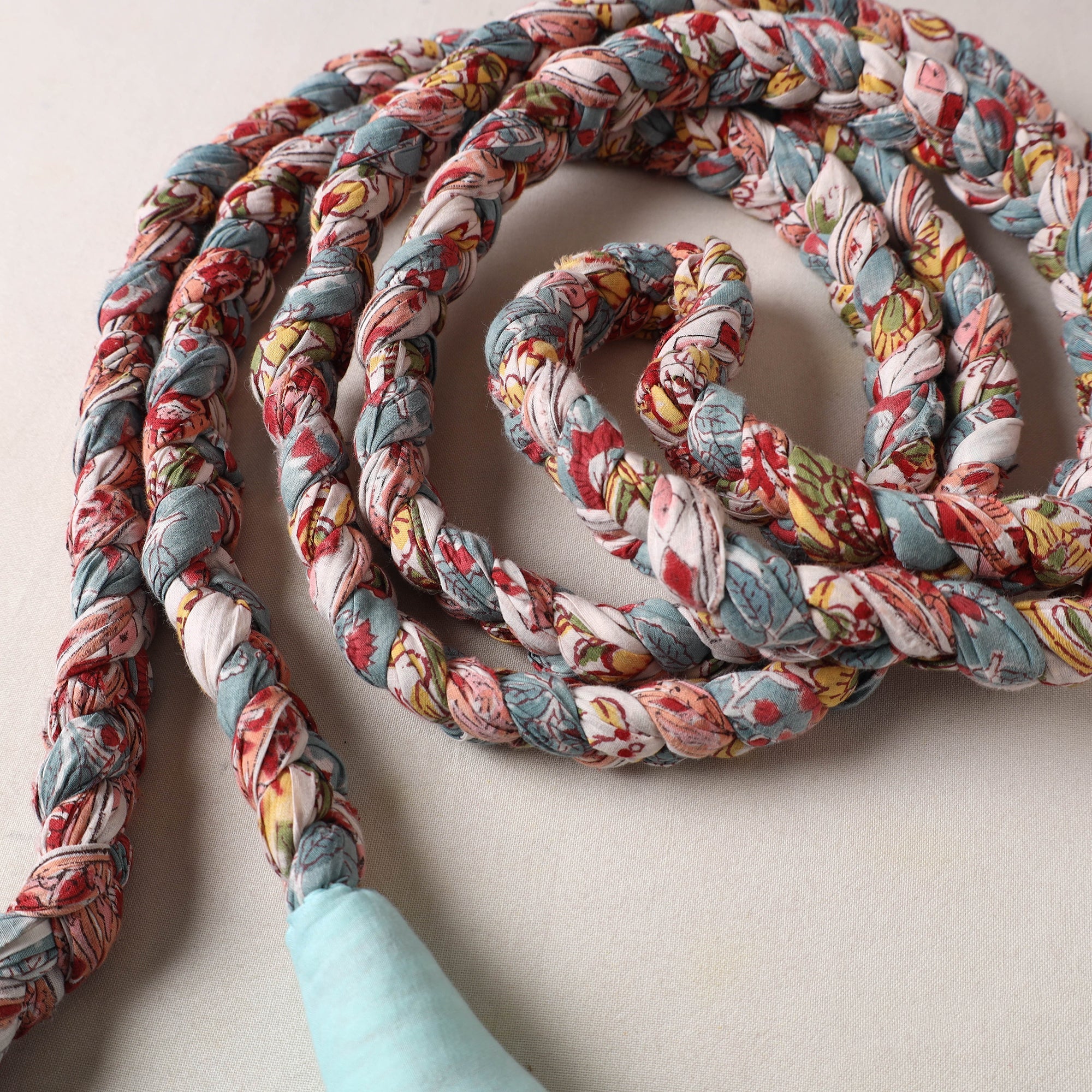 Experience eco-friendly fitness with our handmade upcycled fabric skipping rope. Crafted with care from upcycled cotton fabric with hand braided technique. Its sturdy construction makes it perfect for fitness enthusiasts of all ages. your workout routine or simply want to enjoy some nostalgic skipping, our upcycled fabric skipping rope is the ideal choice for you.