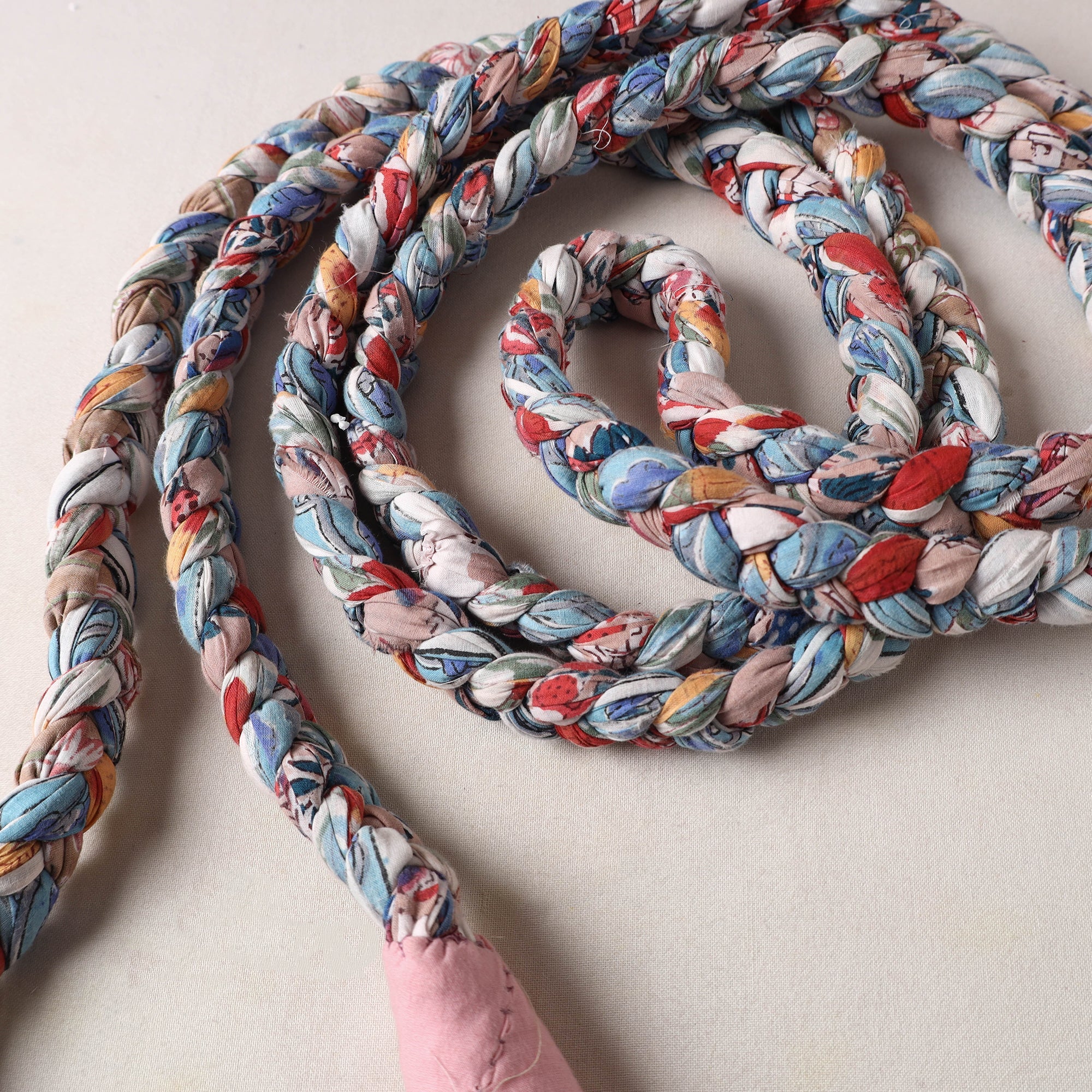 Experience eco-friendly fitness with our handmade upcycled fabric skipping rope. Crafted with care from upcycled cotton fabric with hand braided technique. Its sturdy construction makes it perfect for fitness enthusiasts of all ages. your workout routine or simply want to enjoy some nostalgic skipping, our upcycled fabric skipping rope is the ideal choice for you.