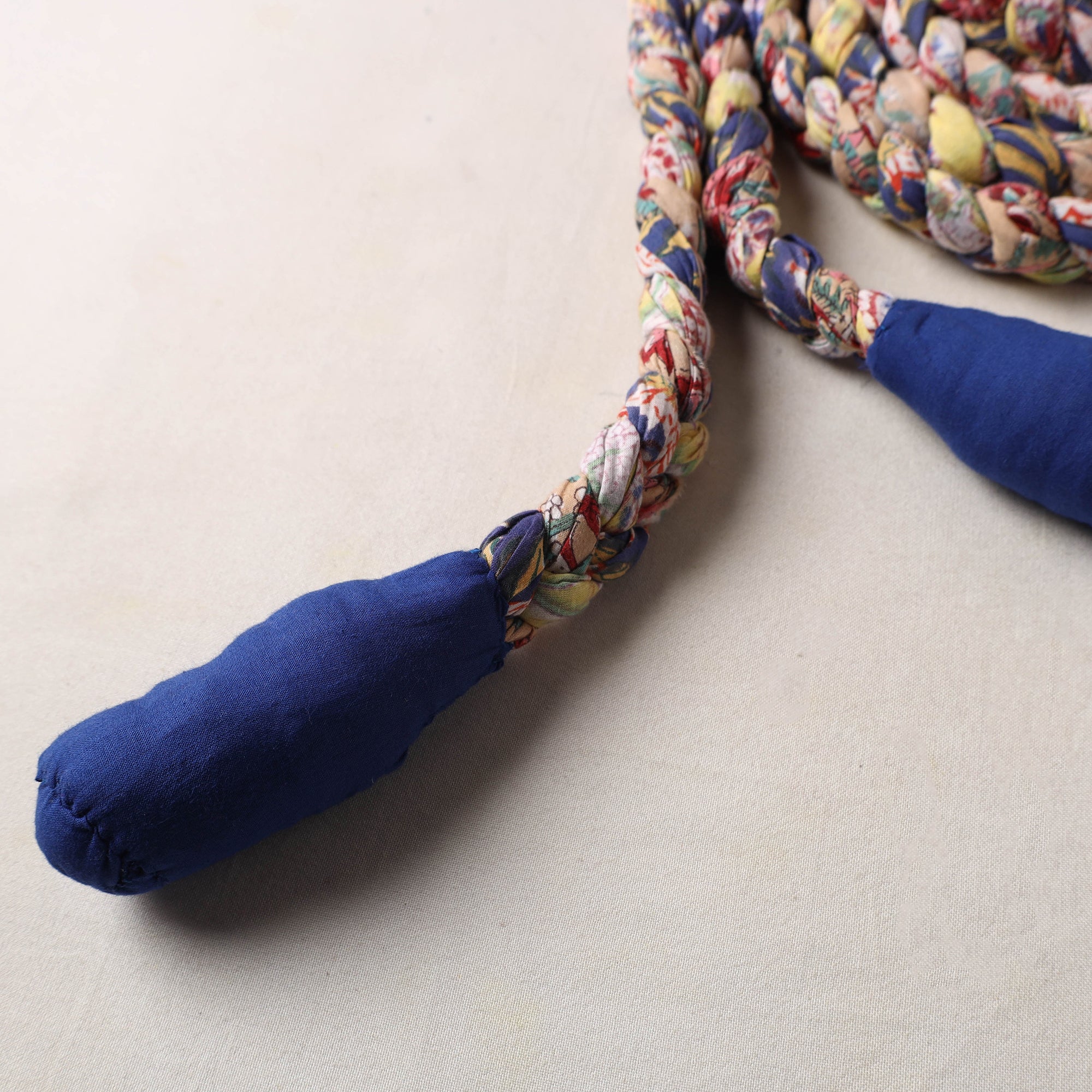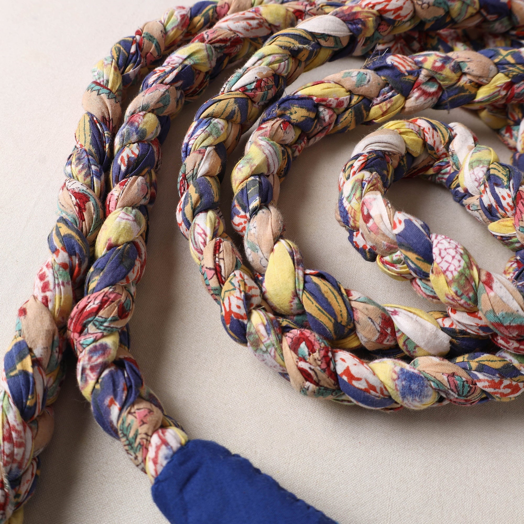 Experience eco-friendly fitness with our handmade upcycled fabric skipping rope. Crafted with care from upcycled cotton fabric with hand braided technique. Its sturdy construction makes it perfect for fitness enthusiasts of all ages. your workout routine or simply want to enjoy some nostalgic skipping, our upcycled fabric skipping rope is the ideal choice for you.