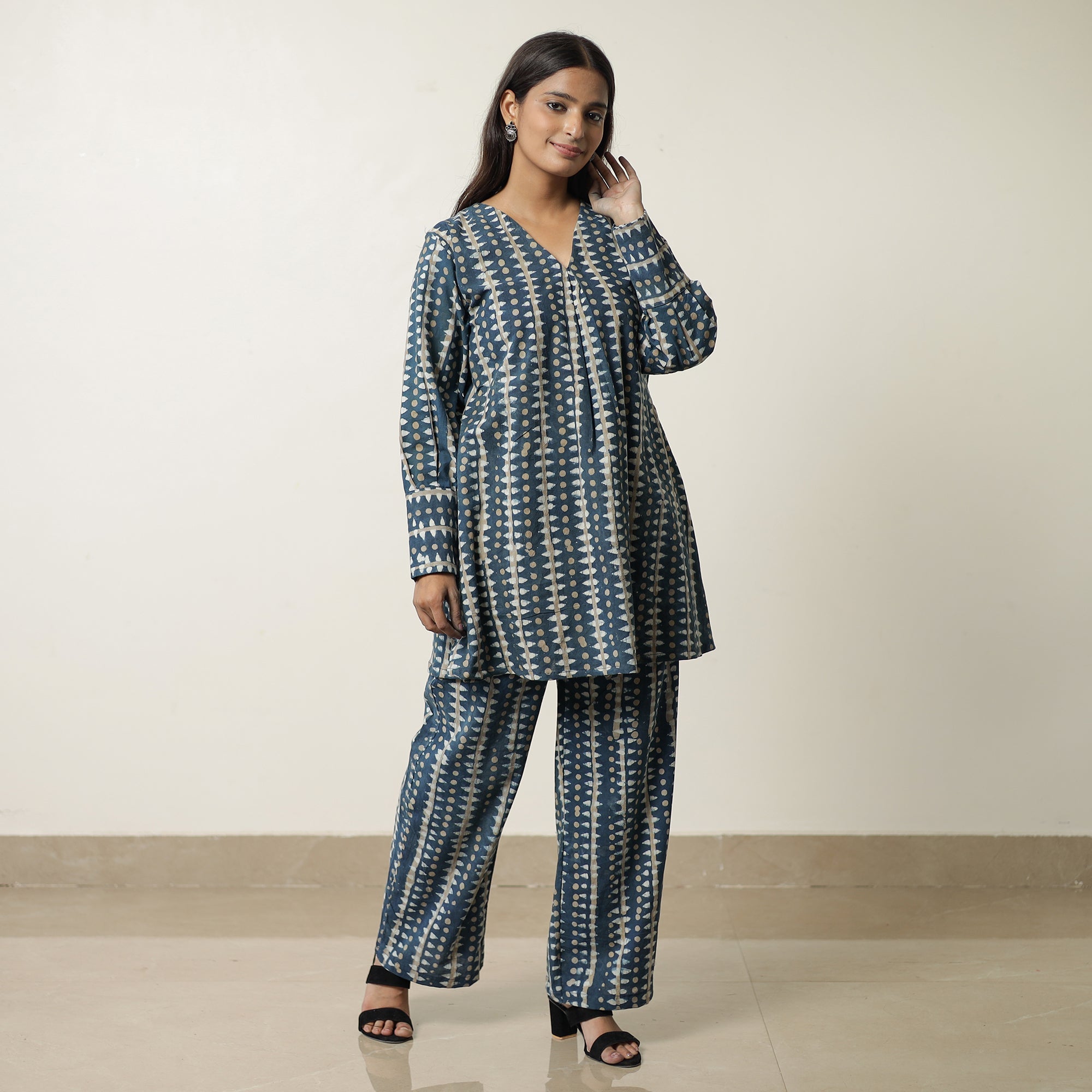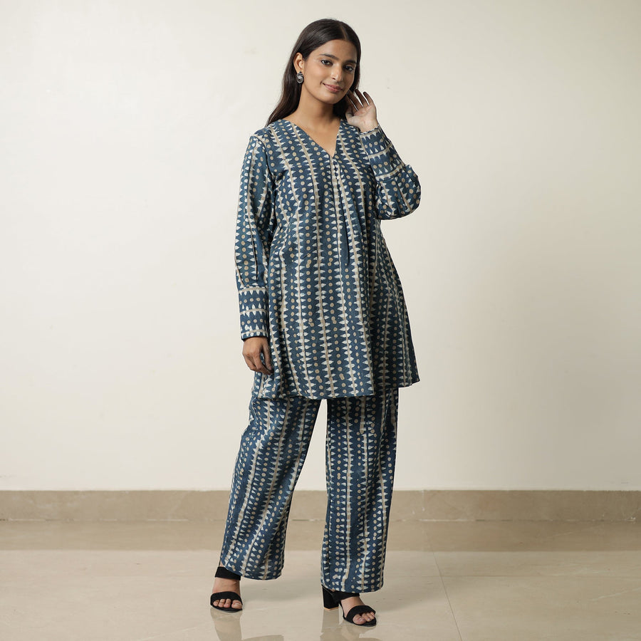 Blue - Indigo Hand Block Printed Cotton Co-Ord Set 08
