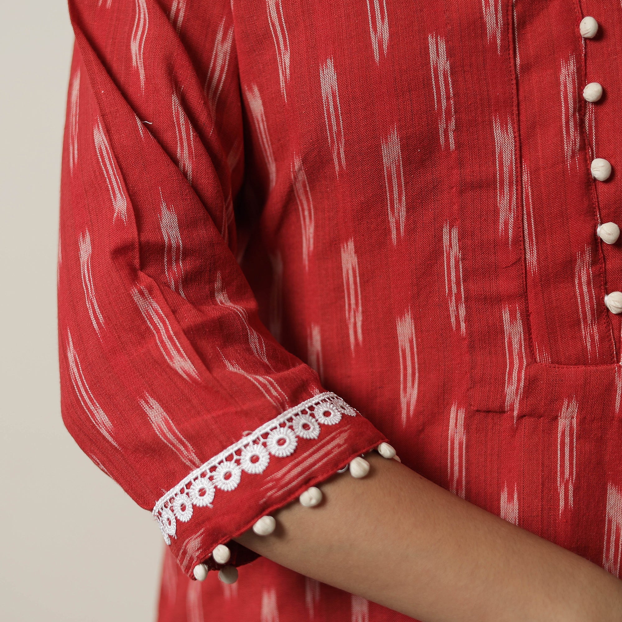 Experience the beauty of Indian ikat with this pochampally ikat weave handloom cotton straight kurta. Crafted from high-quality cotton, it offers comfort and breathability all day. The vibrant ikat patterns in beautiful colors make it a standout piece. The kurta also features a convenient one-side pocket, perfect for carrying small essentials.