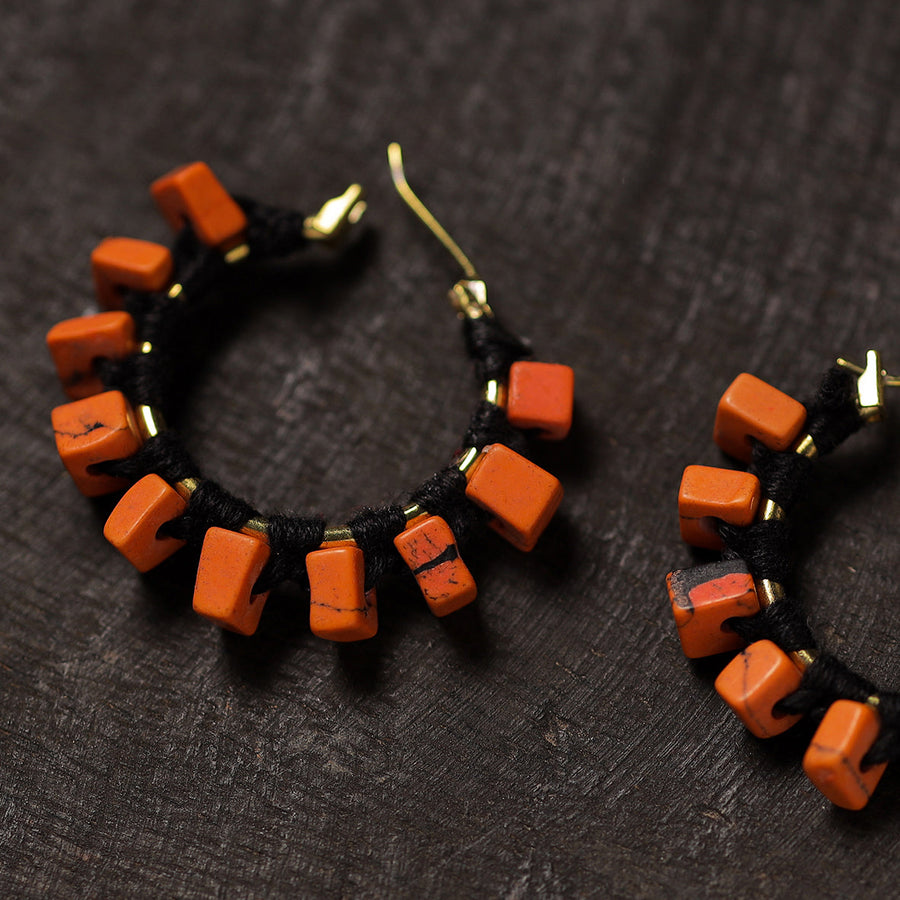 Enhance your elegance with our orange handmade thread & stone work earrings. These intricately designed earrings combine timeless craftsmanship with thread work and natural stones, adding a touch of sophistication to your everyday attire or special events.