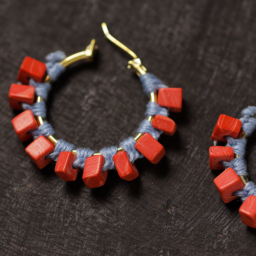 Enhance your elegance with our red handmade thread & stone work earrings. These intricately designed earrings combine timeless craftsmanship with thread work and natural stones, adding a touch of sophistication to your everyday attire or special events.