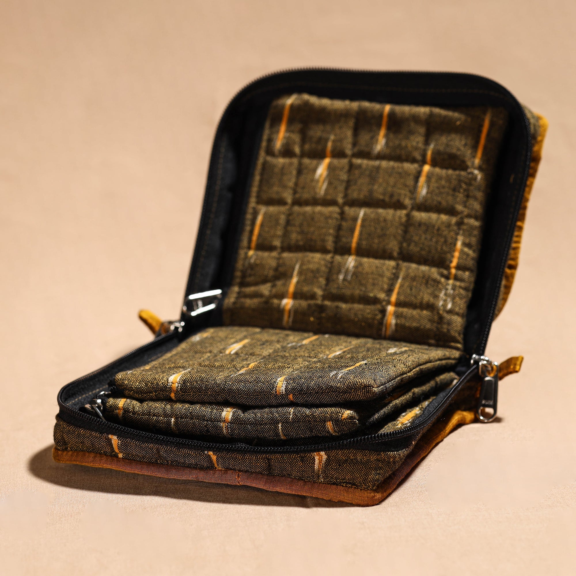 | Material | Brown handmade 4-pocket cotton jewelry bag. It has four spacious pockets that provide ample room for storing and organizing your favorite jewelry pieces. |