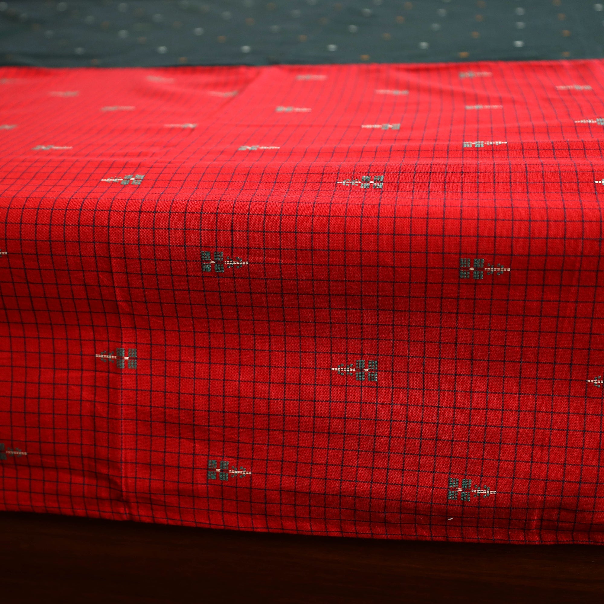 Fine-quality red jacquard patchwork cotton double bed cover with pillow covers, made from cotton fabrics. Drape your bed with these amazing bed covers, which are sure to lend an attractive look to your bedroom.