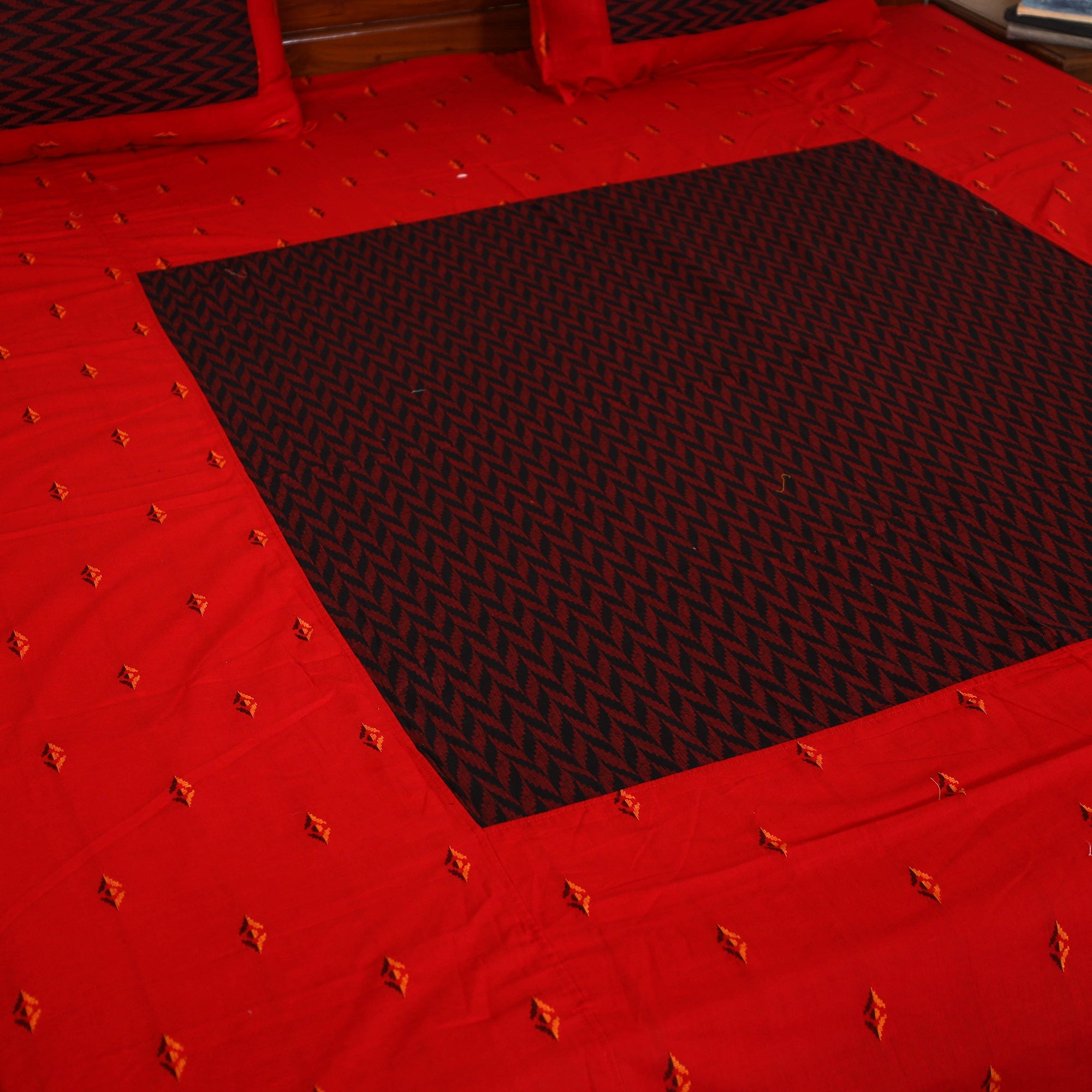 Fine-quality red jacquard patchwork cotton double bed cover with pillow covers, made from cotton fabrics. Drape your bed with these amazing bed covers, which are sure to lend an attractive look to your bedroom.