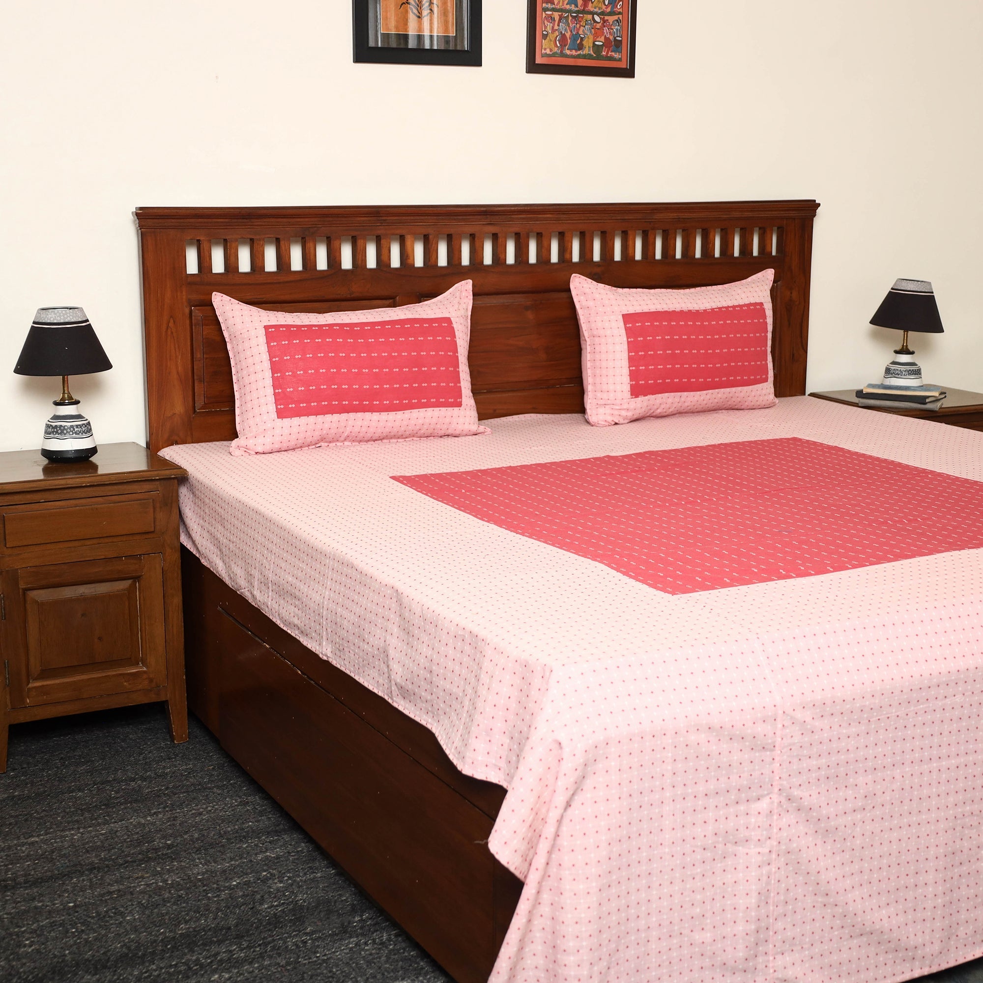Fine-quality pink jacquard patchwork cotton double bed cover with pillow covers, made from cotton fabrics. Drape your bed with these amazing bed covers, which are sure to lend an attractive look to your bedroom.