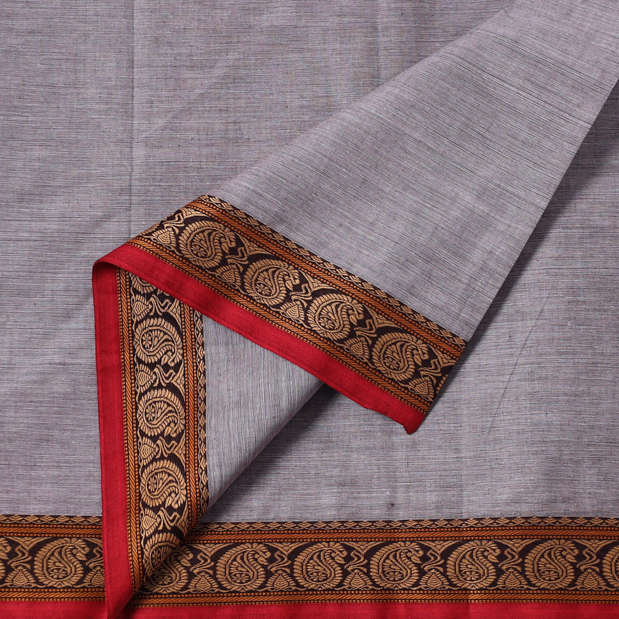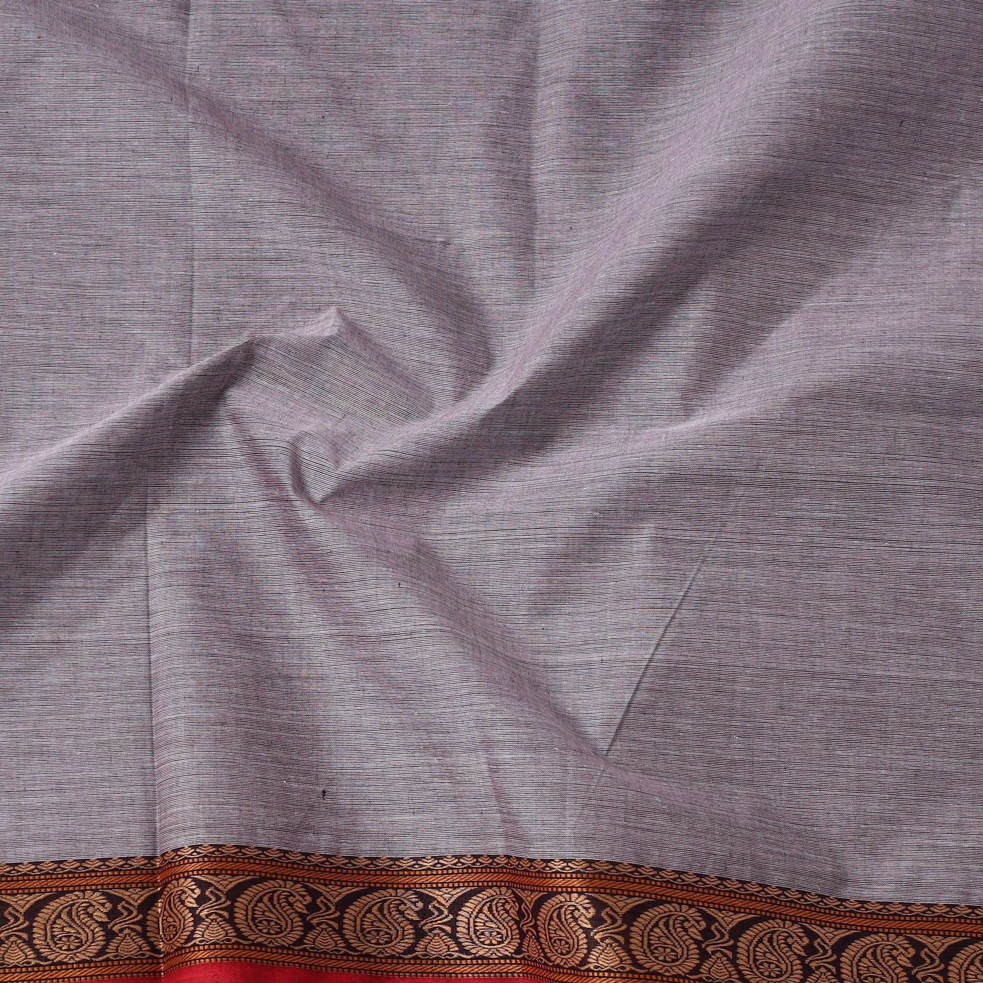 Fine-quality kanchipuram cotton fabric with thread zari border from Kanchi, Tamil Nadu. Brilliantly woven fabric, Kanchi cotton is the glory of the city of Kanchipuram in Tamil Nadu. Perfect for making elegant sarees, dresses, and ethnic wear, it effortlessly blends tradition with contemporary style.
