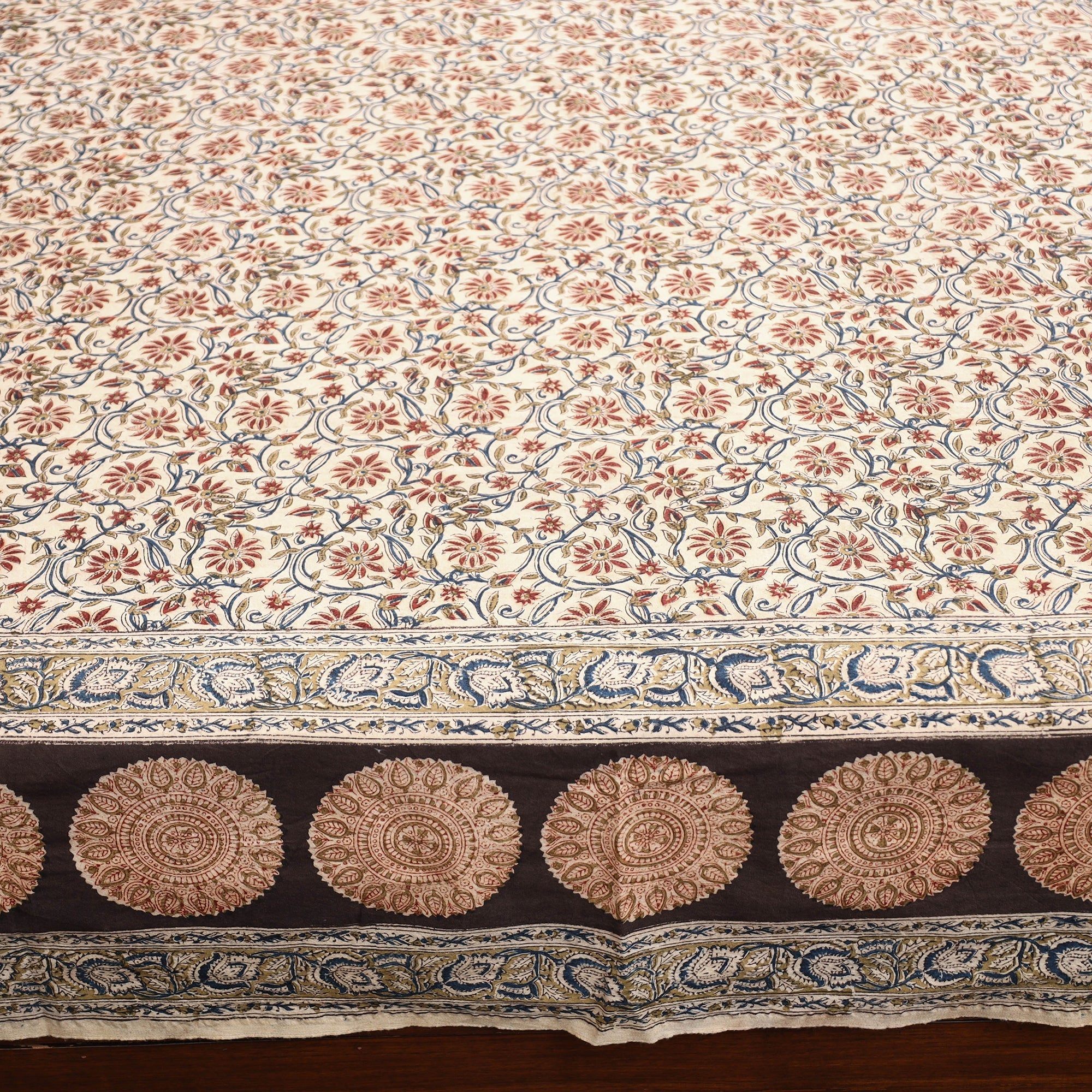 • Block Print Cotton Double Pedana Kalamkari Bed Sheet