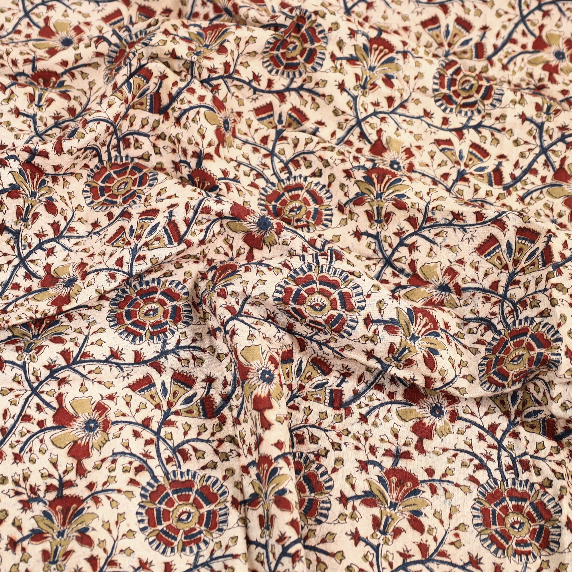 Kalamkari is a type of hand-painted or printed cotton fabric produced in Andhra Pradesh. This is a traditional printing method on cotton fabrics using natural materials without adding chemicals to cotton fabrics.