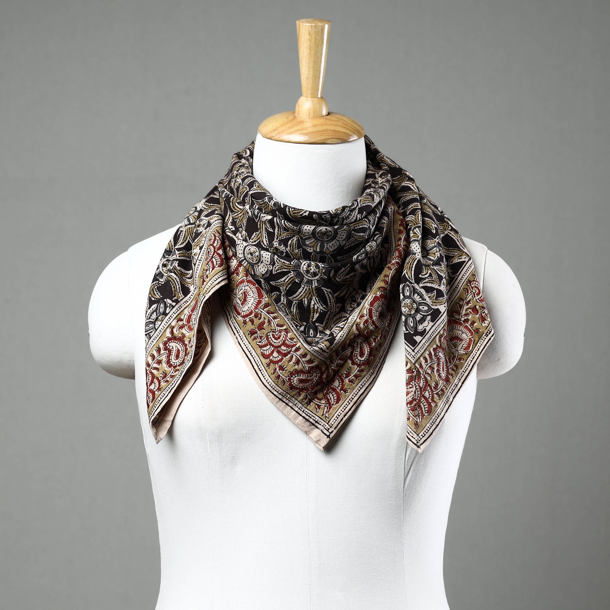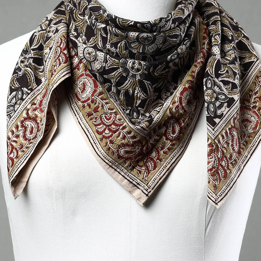 | Material | Elevate your style with this original black kalamkari block printed natural dyed cotton scarf skillfully crafted by the artisans of Pedana. The scarf features an assortment of hand block printed motifs inspired by traditional kalamkari painting. This scarf is perfect to add a touch of elegance to any outfit. |
