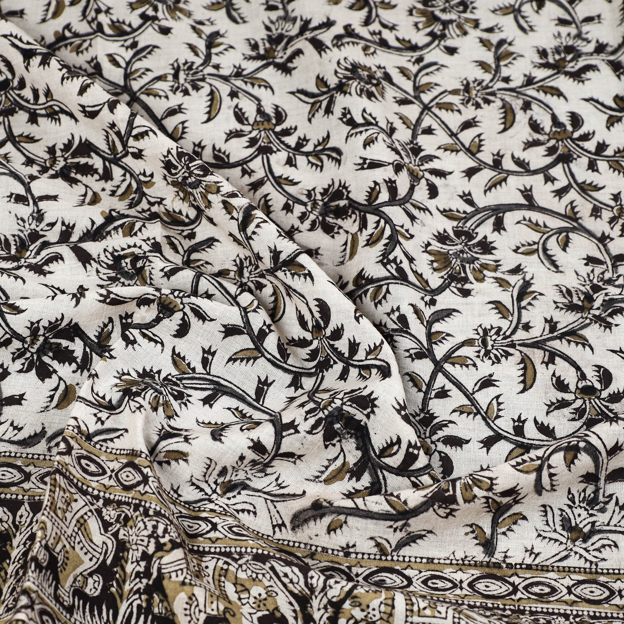 Kalamkari is a type of hand-painted or printed cotton fabric produced in Andhra Pradesh. This is a traditional printing method on cotton fabrics using natural materials without adding chemicals to cotton fabrics.