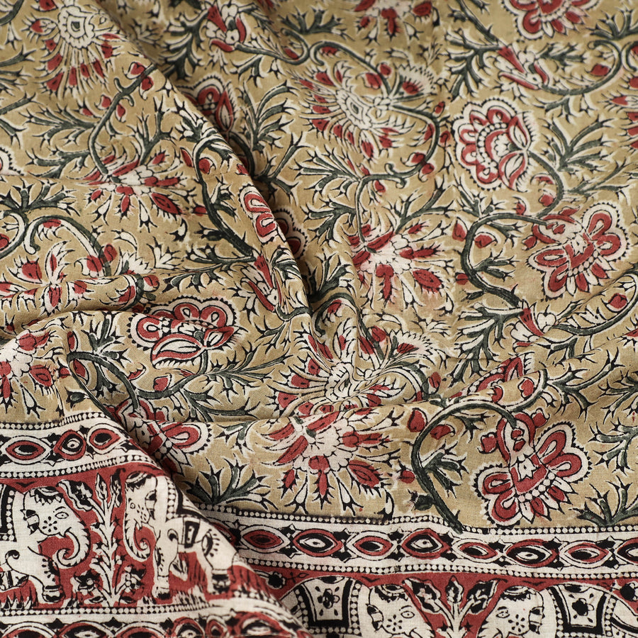 Kalamkari is a type of hand-painted or printed cotton fabric produced in Andhra Pradesh. This is a traditional printing method on cotton fabrics using natural materials without adding chemicals to cotton fabrics.