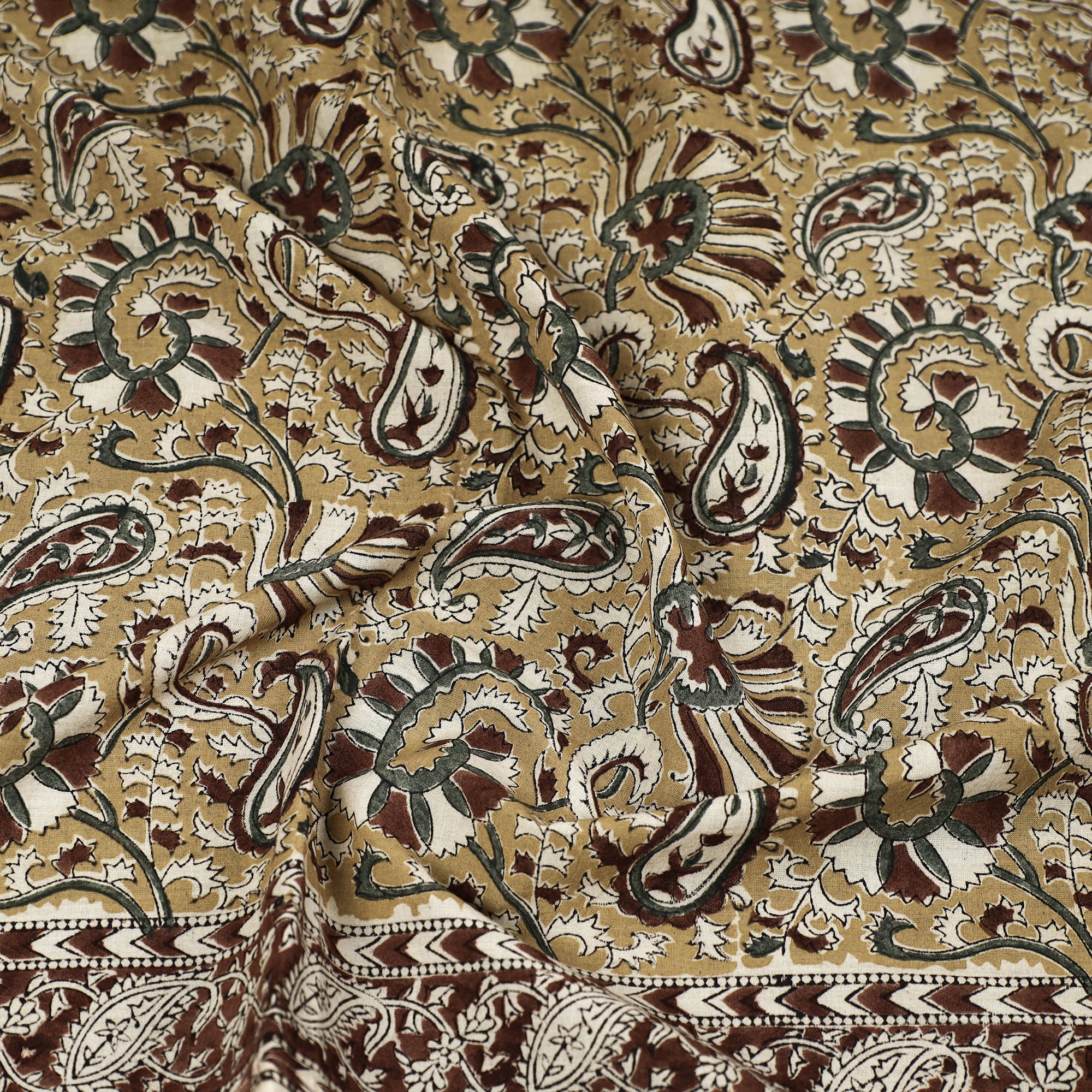 Kalamkari is a type of hand-painted or printed cotton fabric produced in Andhra Pradesh. This is a traditional printing method on cotton fabrics using natural materials without adding chemicals to cotton fabrics.