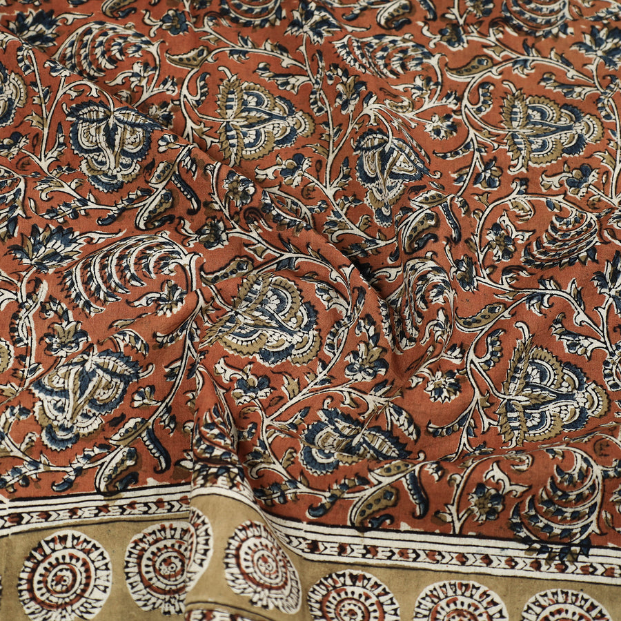 Kalamkari is a type of hand-painted or printed cotton fabric produced in Andhra Pradesh. This is a traditional printing method on cotton fabrics using natural materials without adding chemicals to cotton fabrics.