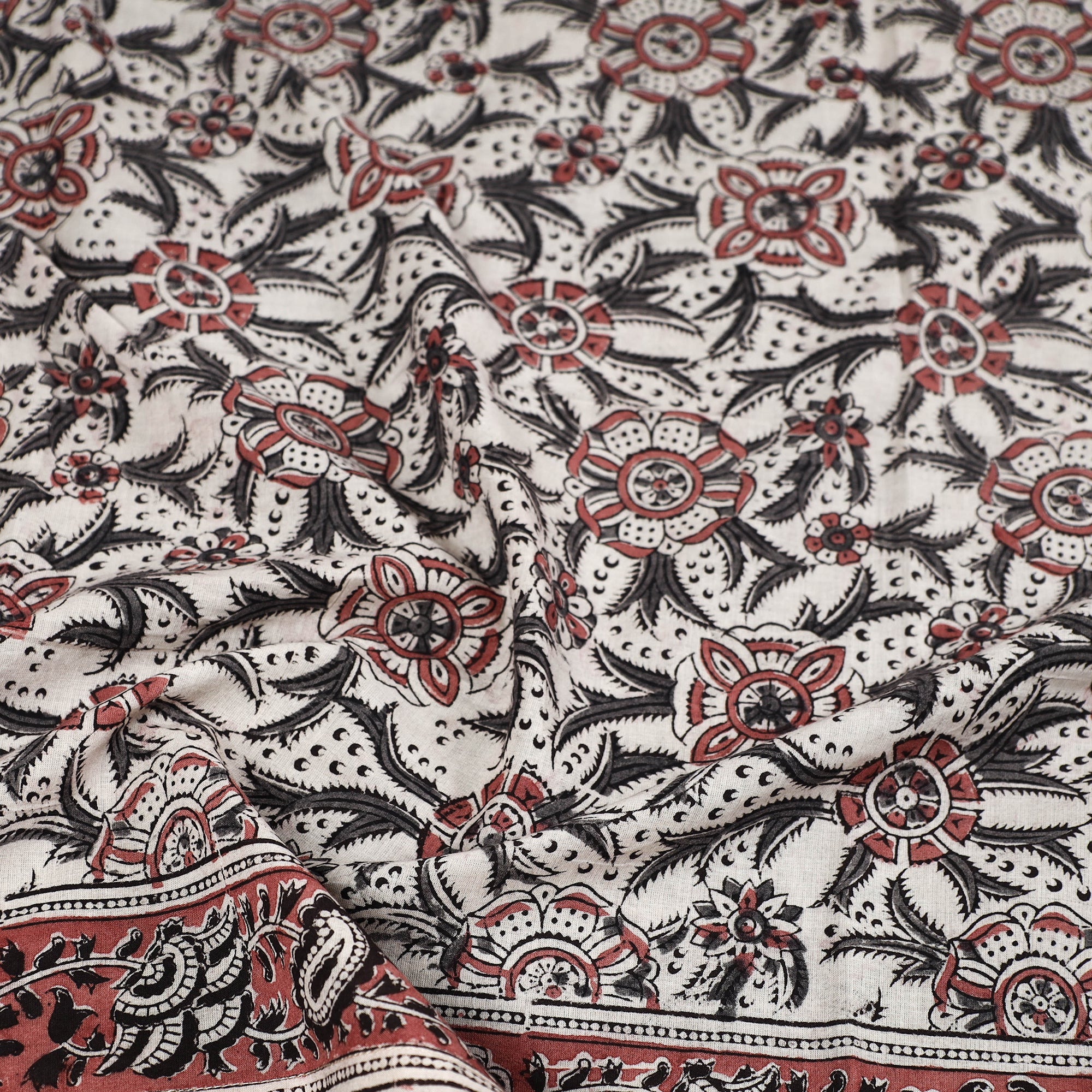 Kalamkari is a type of hand-painted or printed cotton fabric produced in Andhra Pradesh. This is a traditional printing method on cotton fabrics using natural materials without adding chemicals to cotton fabrics.