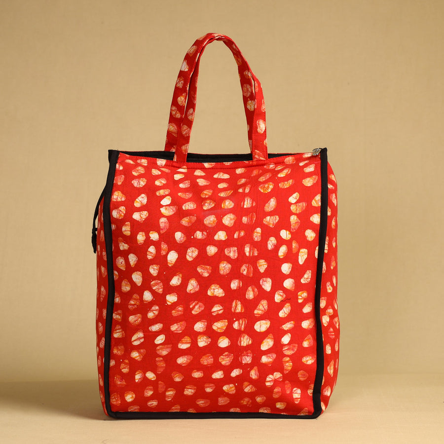 Enhance your shopping routine with our orange handcrafted cotton shopping bag. This shopping bag is made from cotton fabrics. Textured with handmade textiles from India, it is a convenient, stylish, and sustainable companion for your daily shopping, and it has enough space to accommodate most of the items.