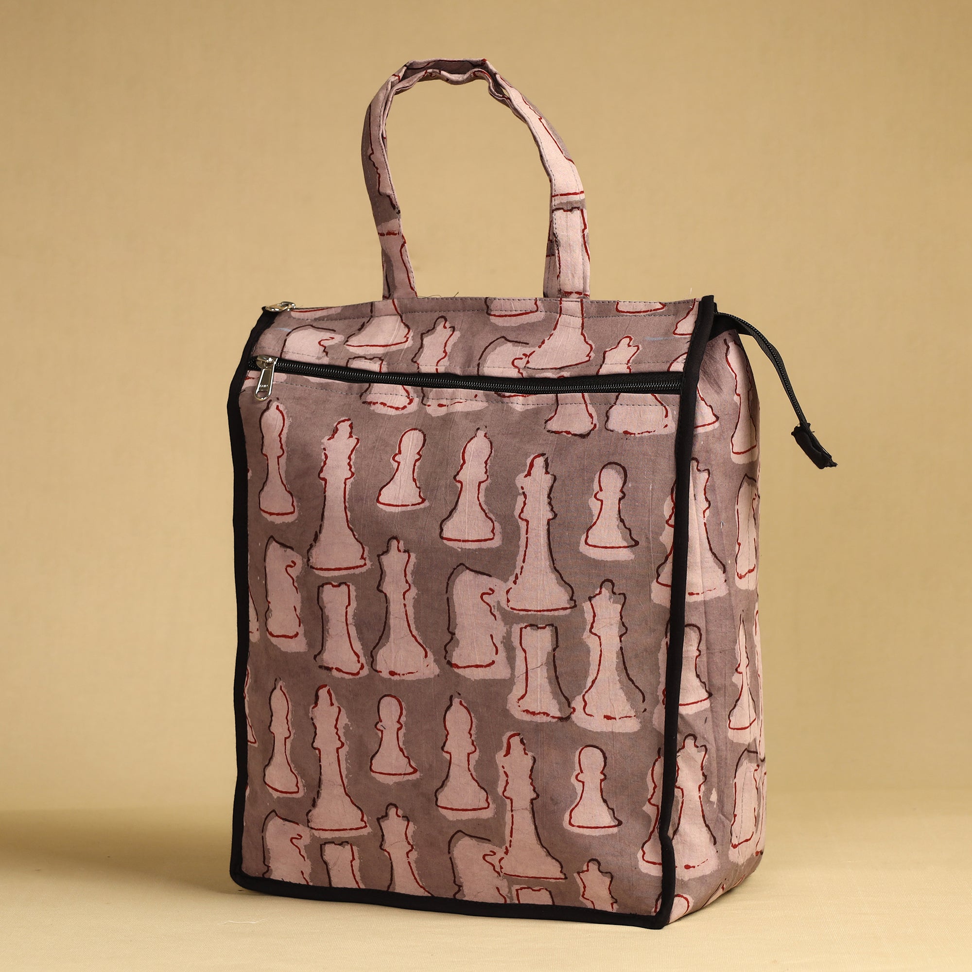 Enhance your shopping routine with our brown handcrafted cotton shopping bag. This shopping bag is made from cotton fabrics. Textured with handmade textiles from India, it is a convenient, stylish, and sustainable companion for your daily shopping, and it has enough space to accommodate most of the items.