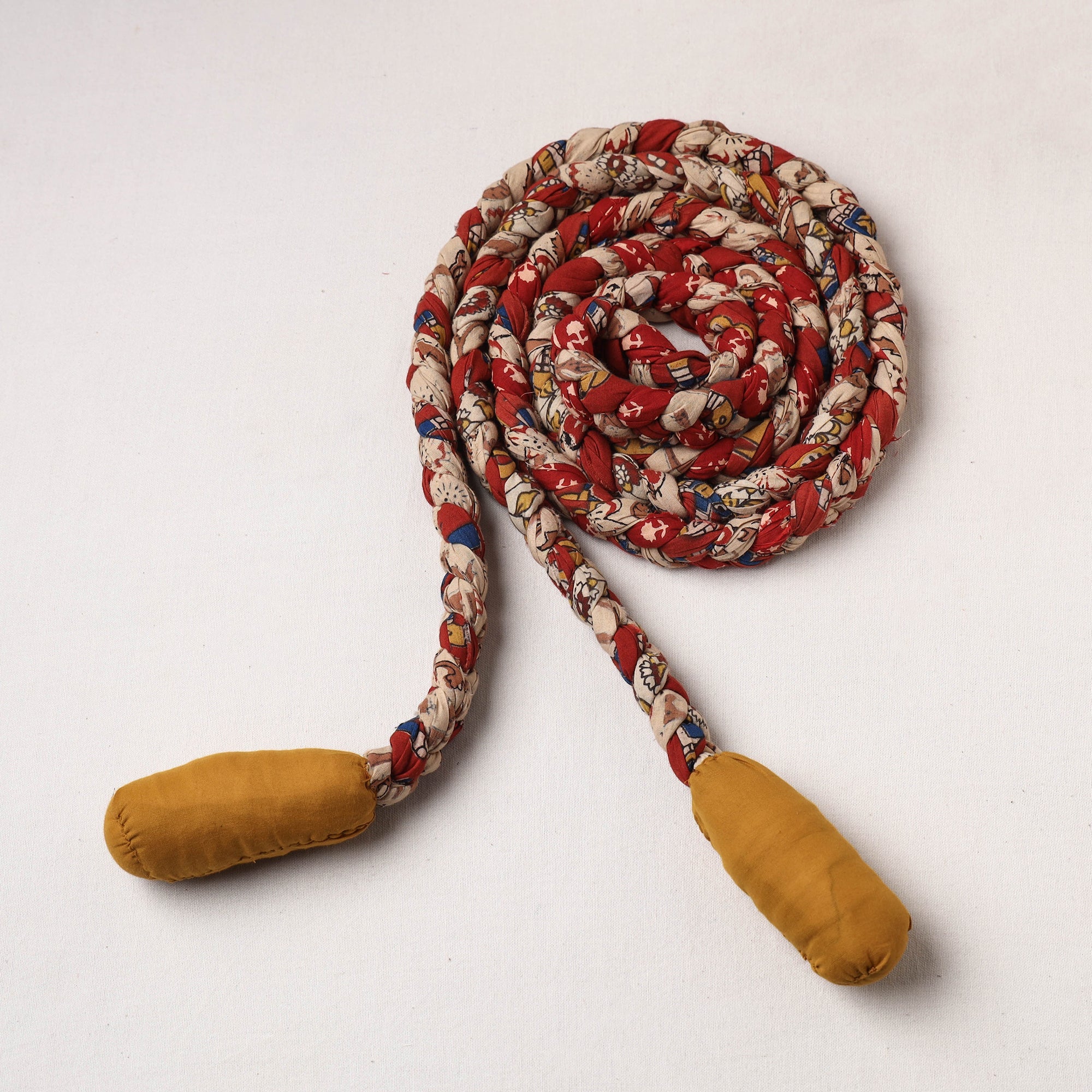 Experience eco-friendly fitness with our handmade upcycled fabric skipping rope. Crafted with care from upcycled cotton fabric with hand braided technique. Its sturdy construction makes it perfect for fitness enthusiasts of all ages. Your workout routine or simply want to enjoy some nostalgic skipping, our upcycled fabric skipping rope is the ideal choice for you.