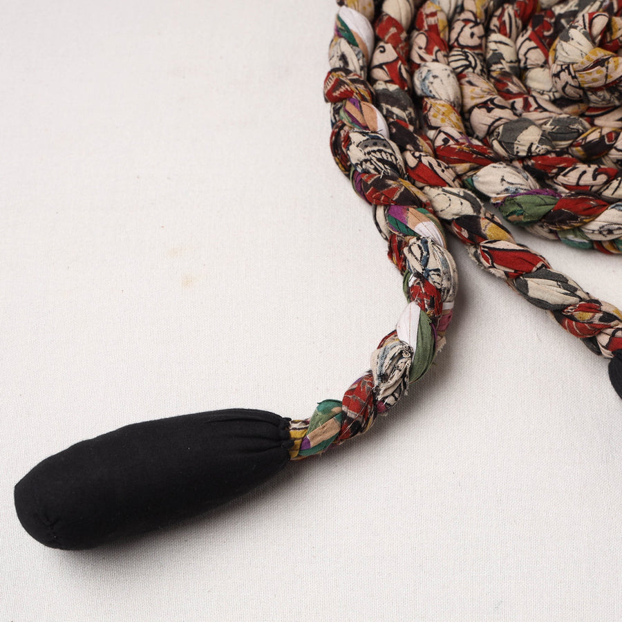 Experience eco-friendly fitness with our handmade upcycled fabric skipping rope. Crafted with care from upcycled cotton fabric with hand braided technique. Its sturdy construction makes it perfect for fitness enthusiasts of all ages. Your workout routine or simply want to enjoy some nostalgic skipping, our upcycled fabric skipping rope is the ideal choice for you.