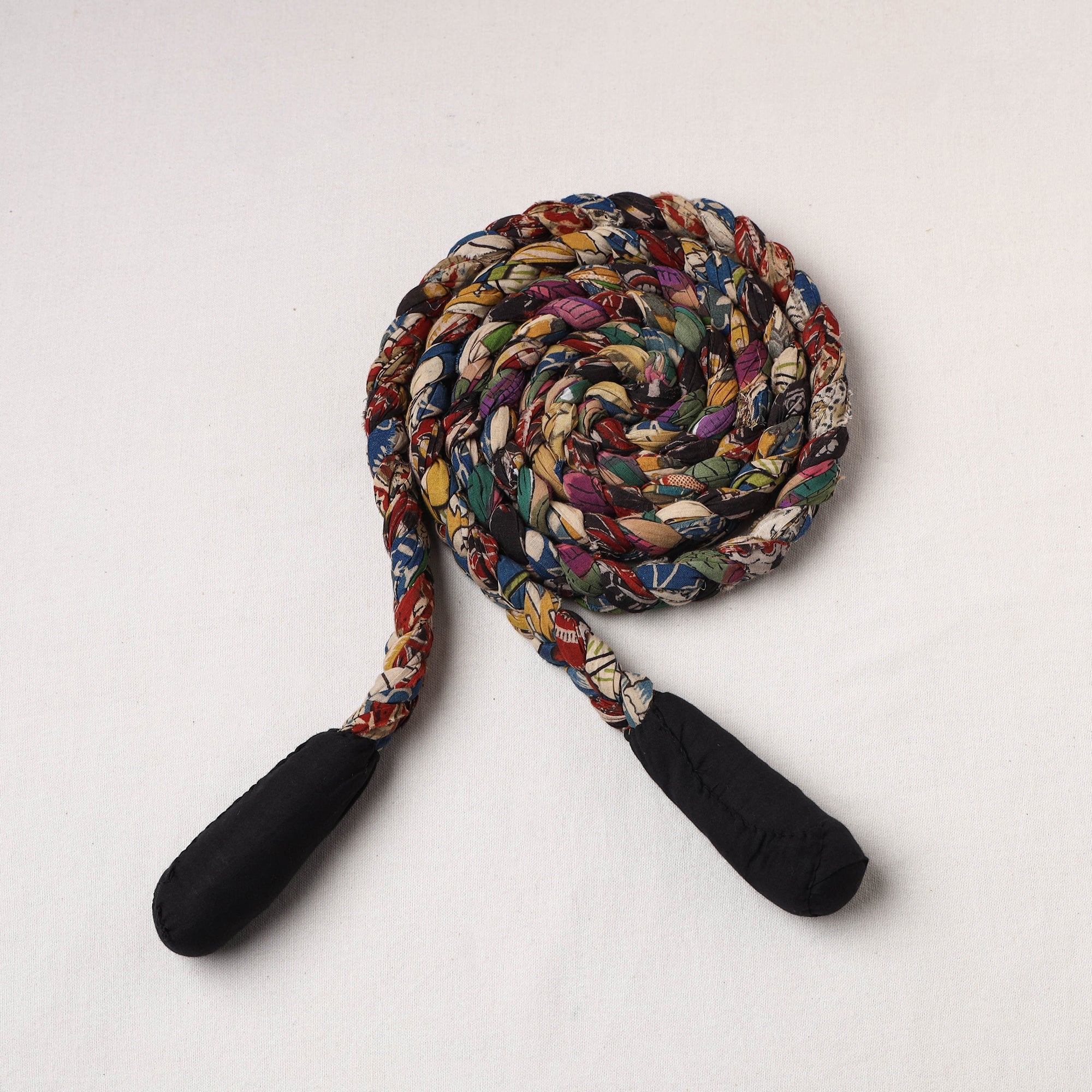 Experience eco-friendly fitness with our handmade upcycled fabric skipping rope. Crafted with care from upcycled cotton fabric with hand braided technique. Its sturdy construction makes it perfect for fitness enthusiasts of all ages. Your workout routine or simply want to enjoy some nostalgic skipping, our upcycled fabric skipping rope is the ideal choice for you.