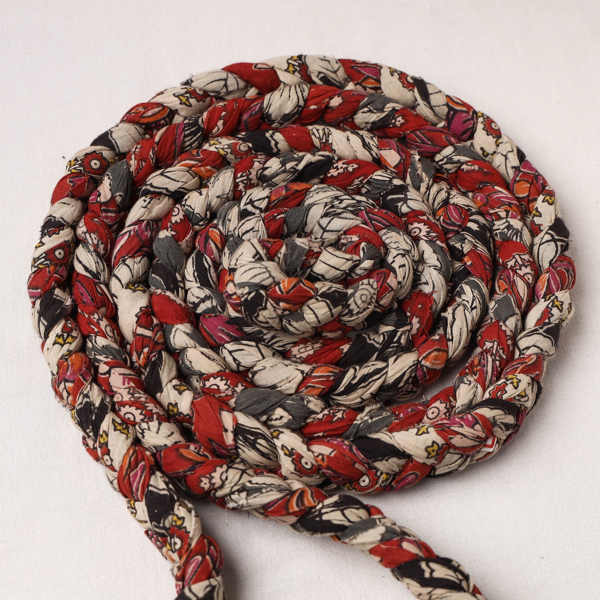Experience eco-friendly fitness with our handmade upcycled fabric skipping rope. Crafted with care from upcycled cotton fabric with hand braided technique. Its sturdy construction makes it perfect for fitness enthusiasts of all ages. Your workout routine or simply want to enjoy some nostalgic skipping, our upcycled fabric skipping rope is the ideal choice for you.