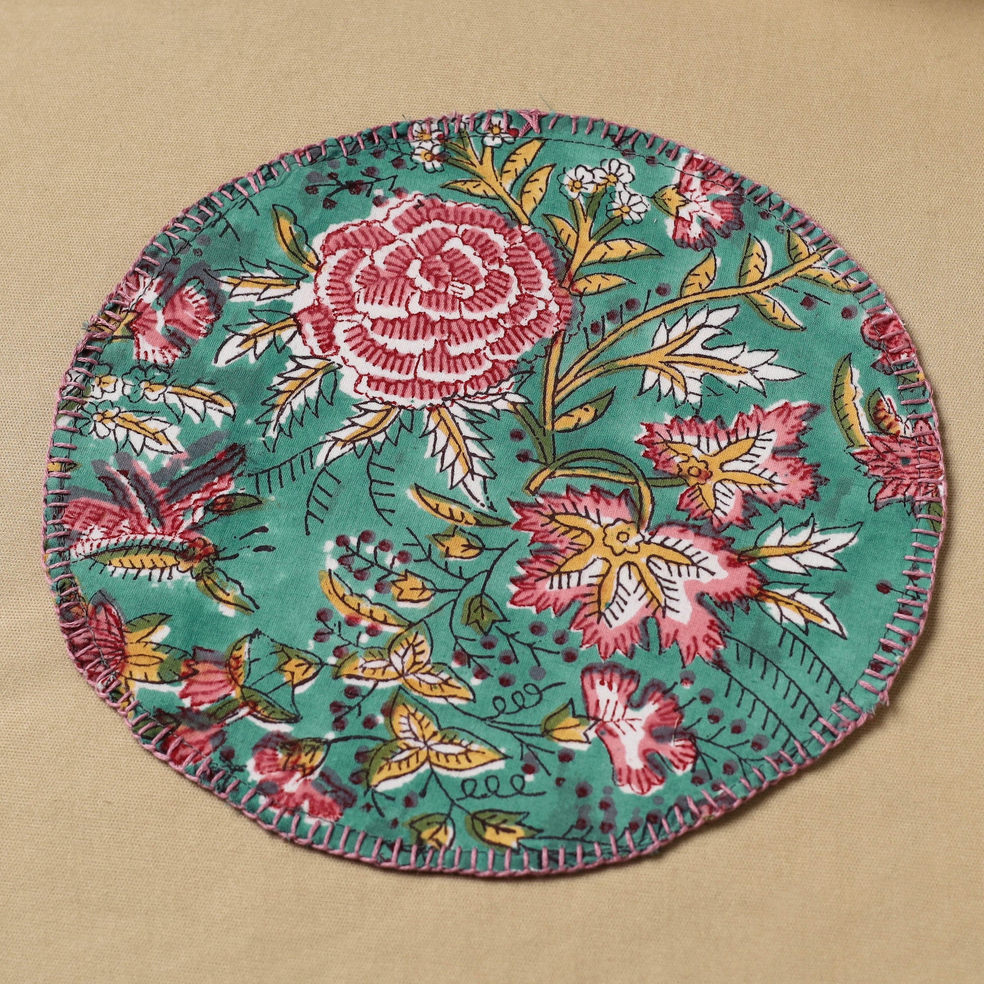 Floral block print with hand embroidery roti napkin is a versatile kitchen accessory designed to keep your roti warm and fresh. Made from soft cotton, it features vibrant colors and patterns that add a touch of charm to your dining table.