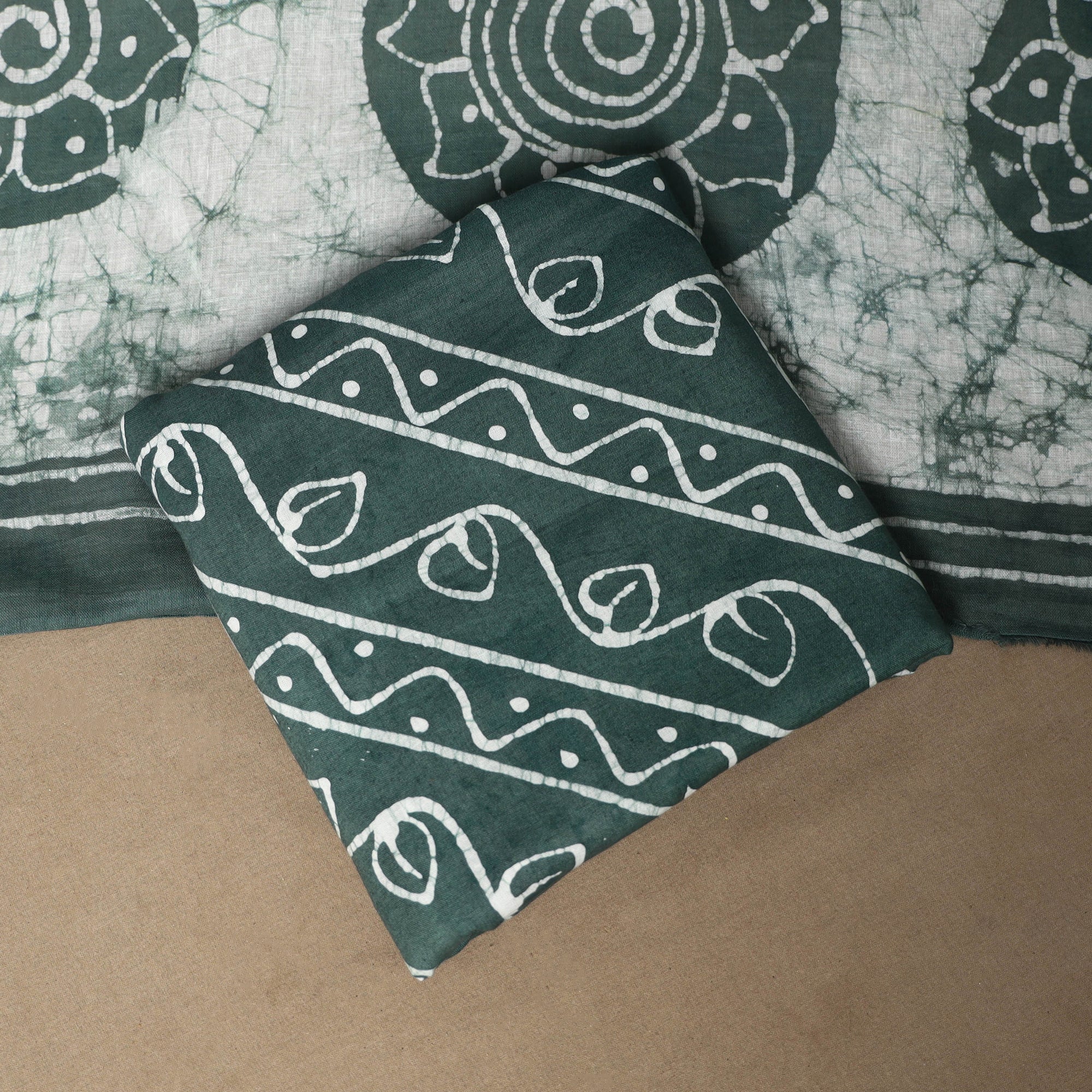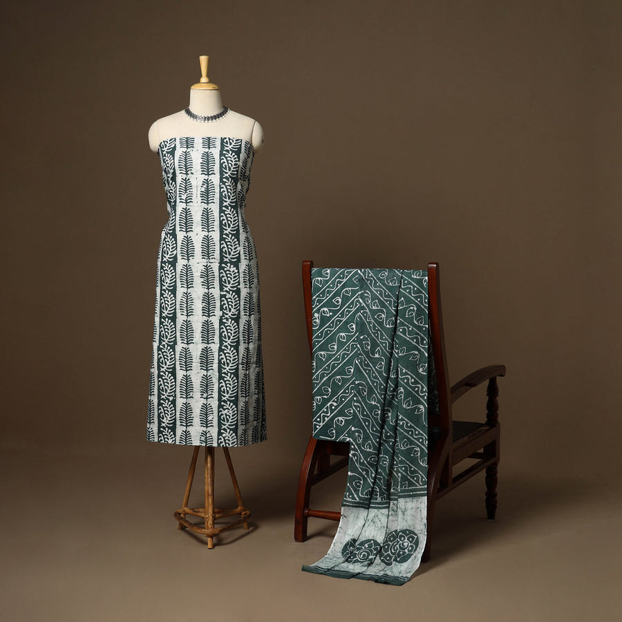 This green 3pc cotton kutch batik print dress material, crafted in Kutch using traditional wax-resist dyeing techniques. Batik offers both durability and comfort, making it a perfect choice for everyday or festive wear. The vibrant colors and intricate designs make this set a statement piece.