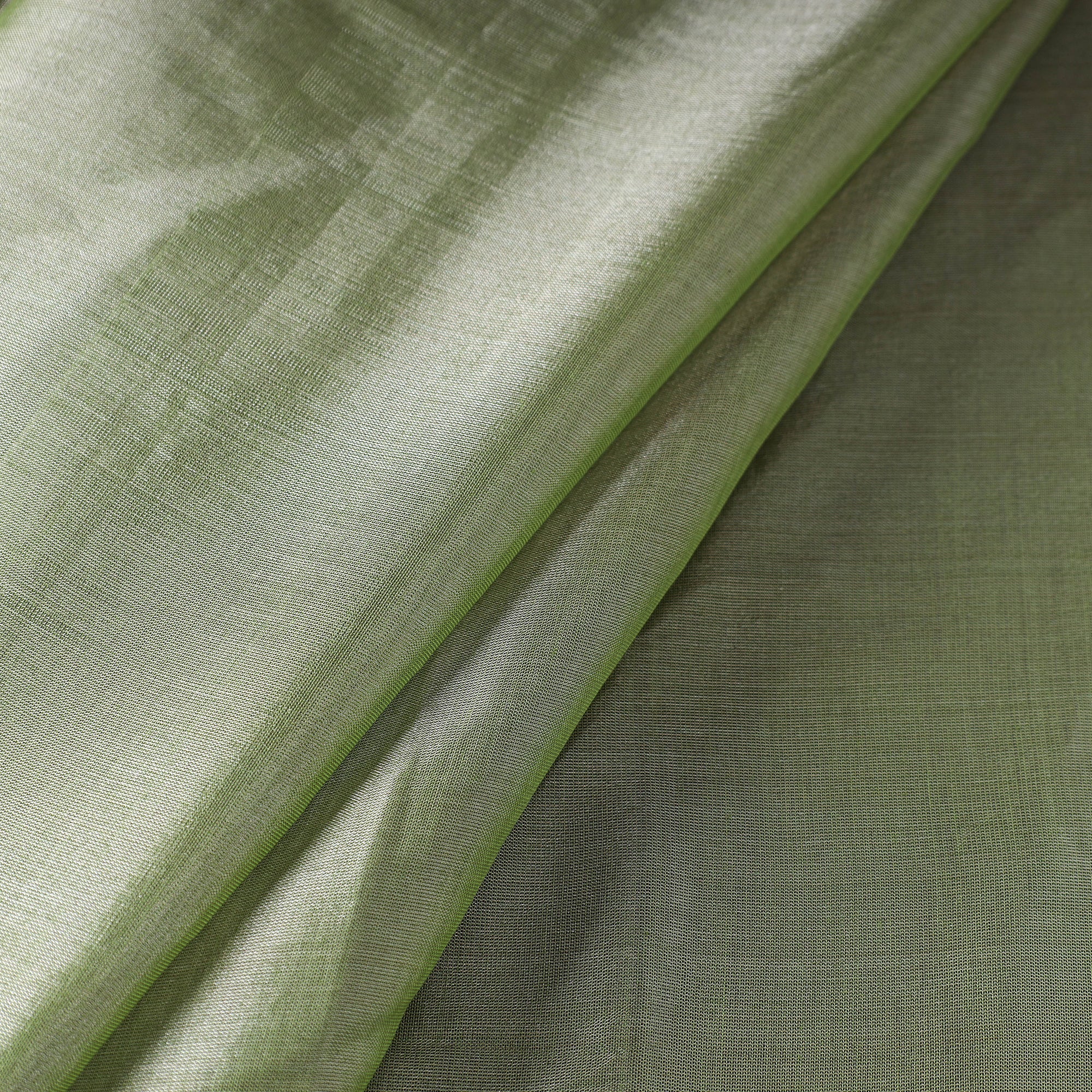 Width : 113 cm. Warp - Mercerised Zari, Weft - Silver Zari, Shrinkage : 0%. Transparency : 5-10%. Medium fine density light weight fabric suitable for all clothing purpose. Note : If you make a saree with tissue fabric, no lining is required, but for garments like kurtas, blouses, and tops a lining is needed.